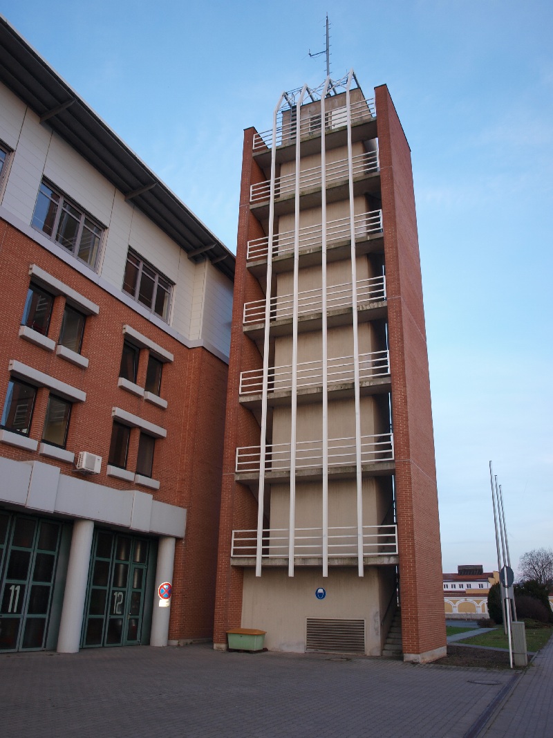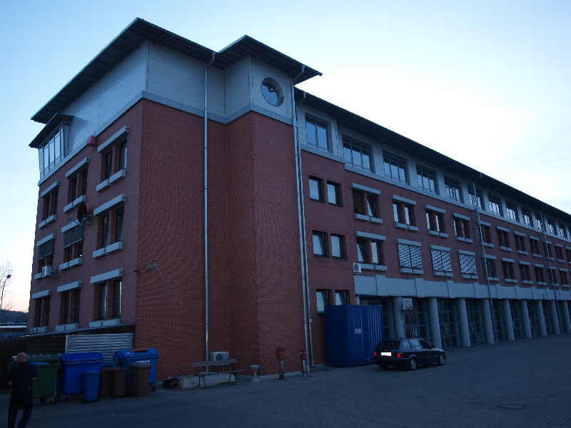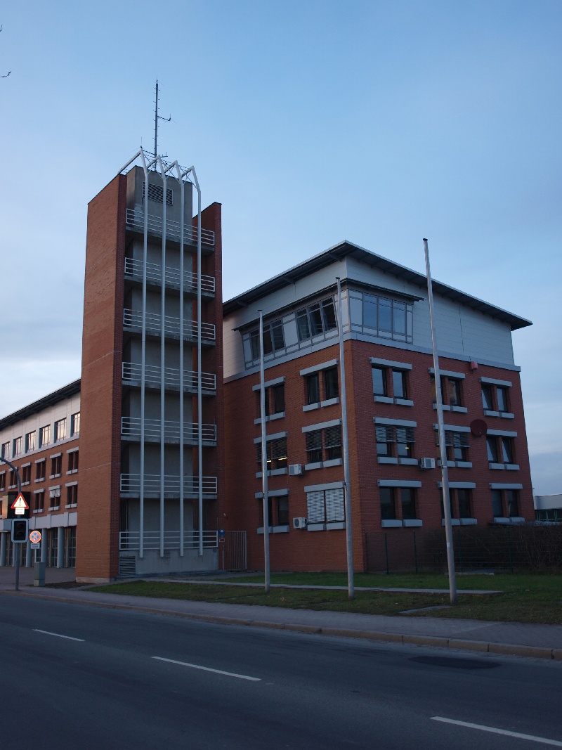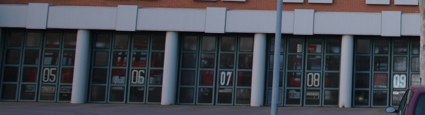 Das Gebäude hat 12 Tore vorne und 12 hinten, davon sind meines Wissens nach 10 Stellplätze für die Großfahrzeuge, eins für den KDOW des Chefes und eins für die Werkstatt.