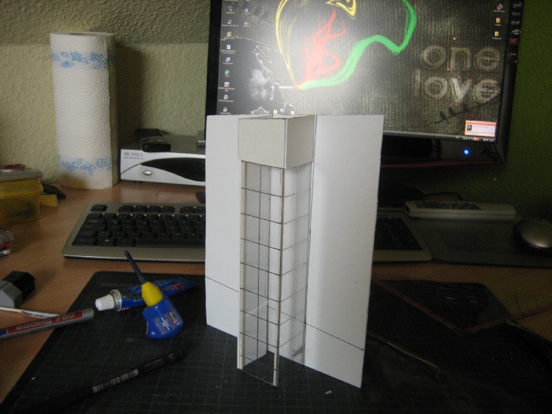 Es besteht aus weißen Polysturol Platten aus dem Bastelladen.