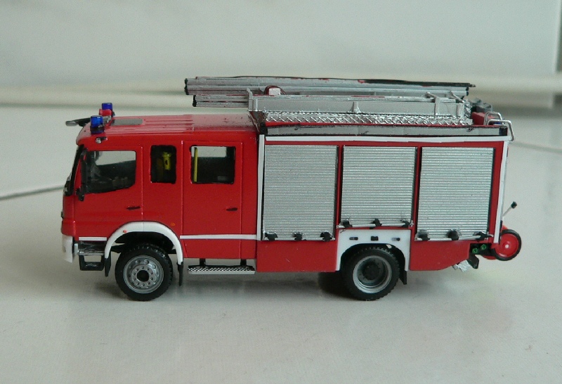 Also eigentlich ganz einfach. Es handelt sich um ein Herpa LF 20/16 auf Atego, wo neu lackiert worden ist und dementsprechend an das Orginal angepasst wurde.