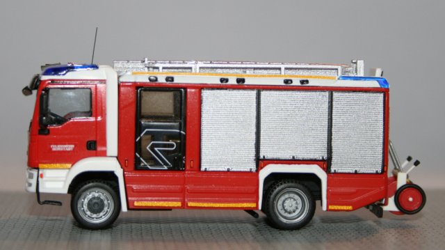 Den Anfang macht ein neuer Rüstwagen. Nachdem der alte RW mit Ladebordwand und Straßenfahrgestell nich so recht überzeugen konnte, wurde beim neuen wieder ein normaler beschafft. MAN TGS Euro 6 Fahrgestell mit Alufire Aufbau.