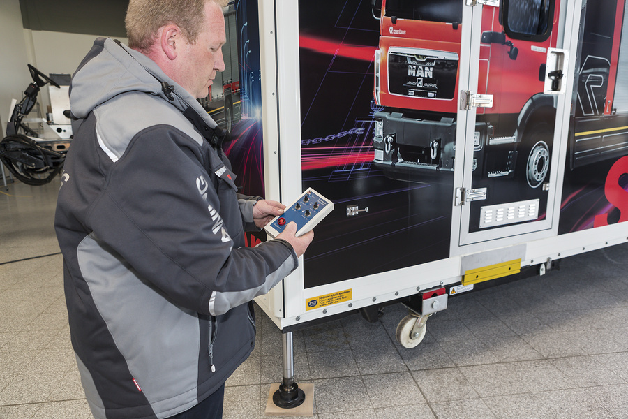 Die Fahrerkabine des ERDS ist die eines Mercedes Benz Actros mit allen Original-Bedienelementen und -Anzeigen sowie Original-Automatikschaltung. Die Kabinen-Nachbildung befindet sich auf einer Bewegungsplattform mit drei elektrisch angetriebenen Spindelaktuatoren, so dass sich die Kabine wie im echten Fahrbetrieb bewegt. Stöße durch Randsteine und Fahrzeugbewegungen – verursacht beispielsweise durch Fahrbahnveränderungen – werden entsprechend realisiert und fühlbar gemacht. Das Bild von Straßen und Autobahnen, egal ob in einer Landschaft oder in einer Stadt, erscheint durch Projektion auf den Front- und Seitenscheiben, TFT-Monitore ersetzen die Rückspiegel.