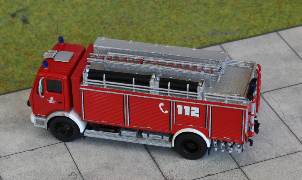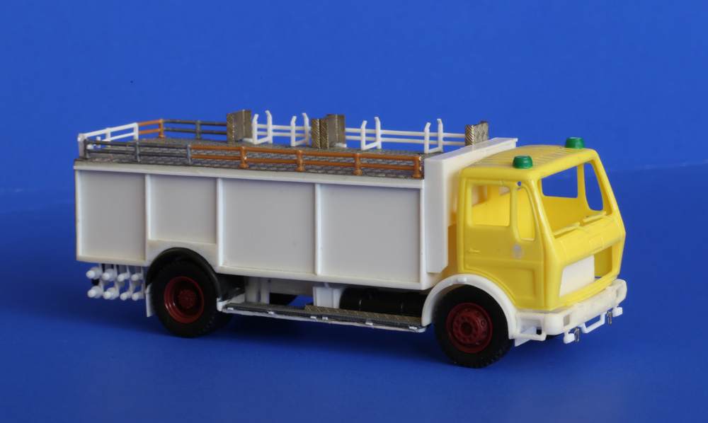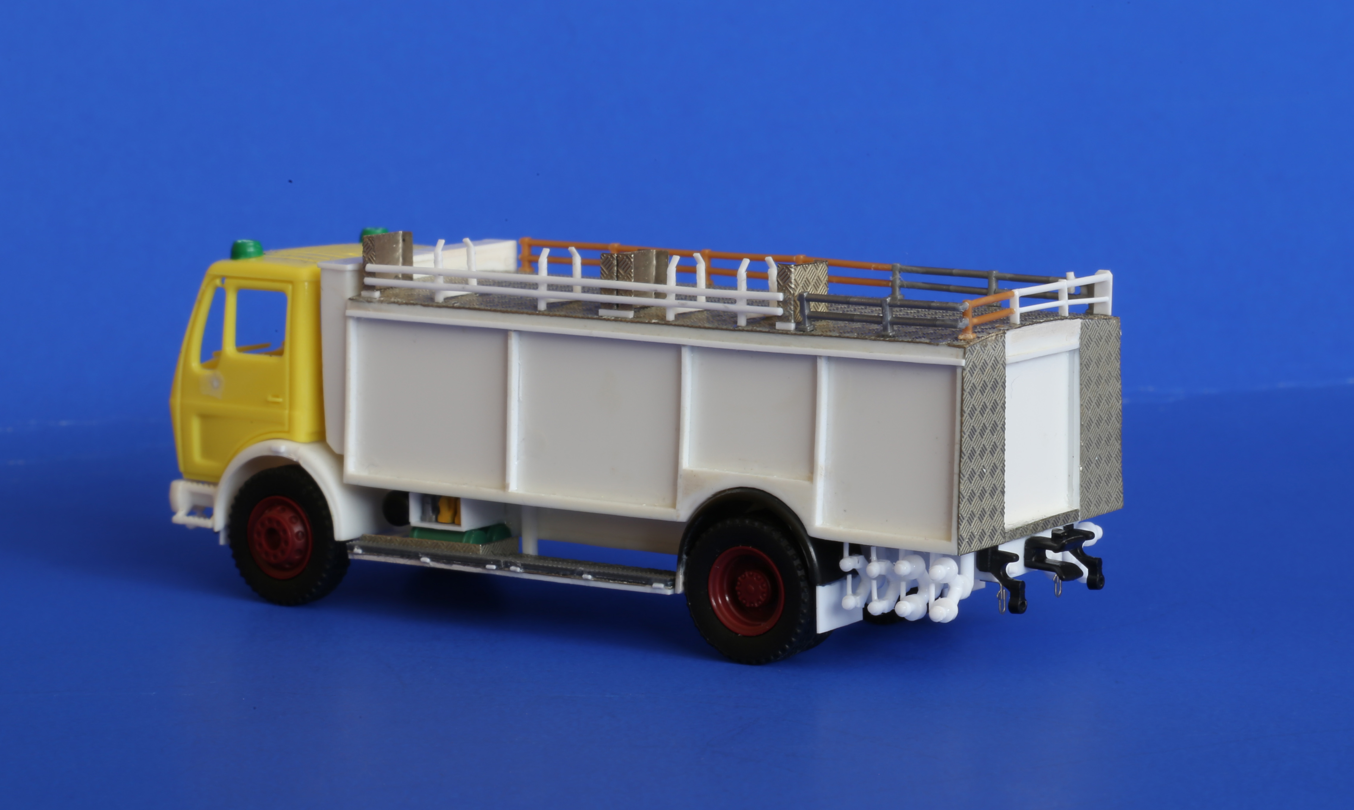 Basis ist auch hier wieder ein Herpa-Mercedes. Der Aufbau entstand auch hier wieder aus Platten und Profilen. Am aufwendigsten waren hier die Abgänge hinten. Sonst hielt sich der Aufwand in Grenzen.