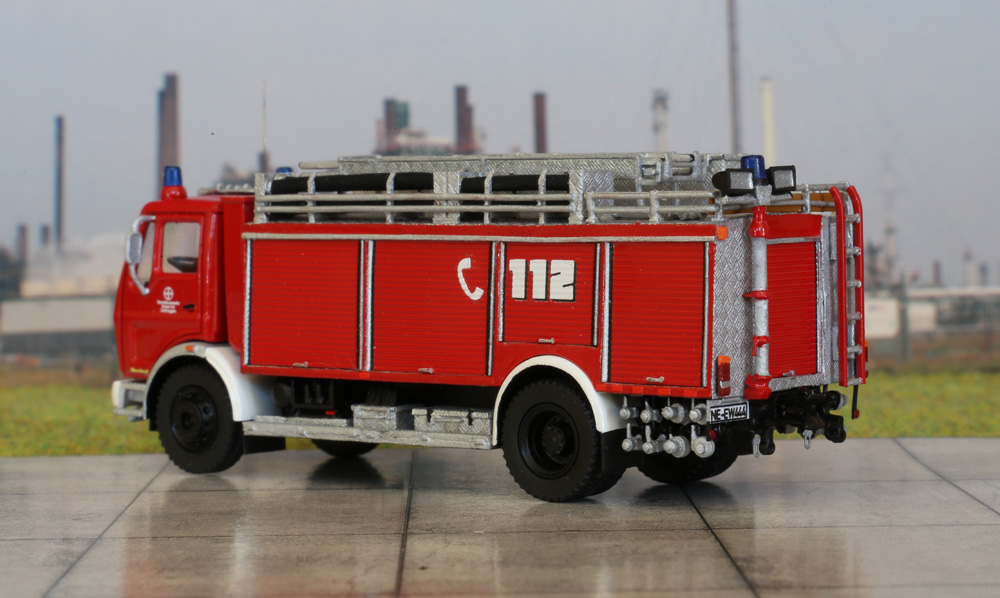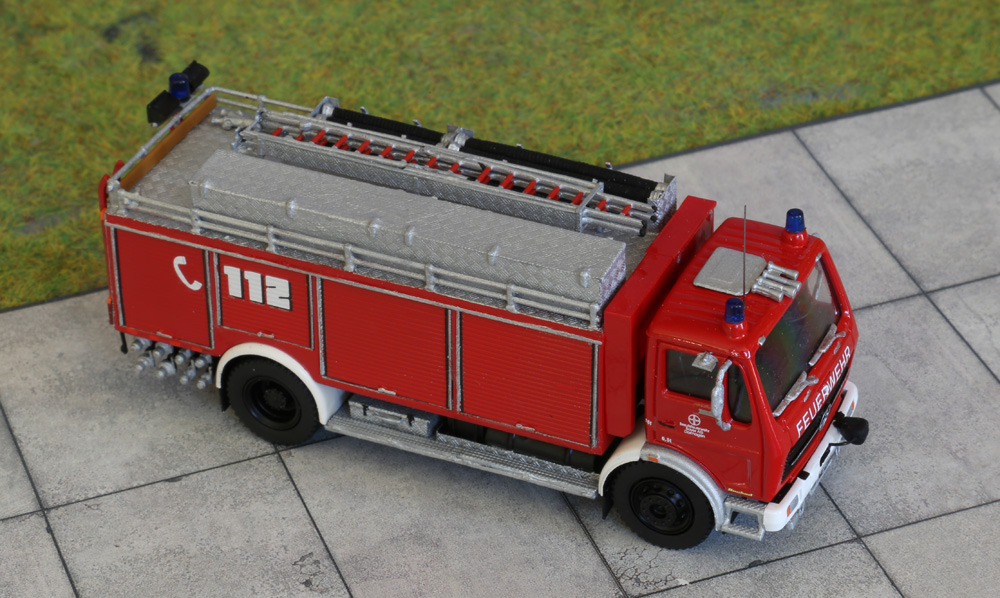 als ich mir 1980 auf der Interschutz in Hannover das Buch von H.P. Orth "Feuerwehrfahrzeuge in der Geschichte" gekauft habe, entdeckte ich das hier verwendete Vorbild. Da damals die Palette der vorhandenen Modellkomponenten nicht so groß war wie heute, es aber das NG-Fahrerhaus schon gab, kam die Idee, dieses Fahrzeug nach zu bauen. Bei der Idee ist es bis heute geblieben. Man gut, denn so kann ich heute dann tolles Modell bestaunen und muss es nicht verschämt mit einem "Altwerk" von damals vergleichen.