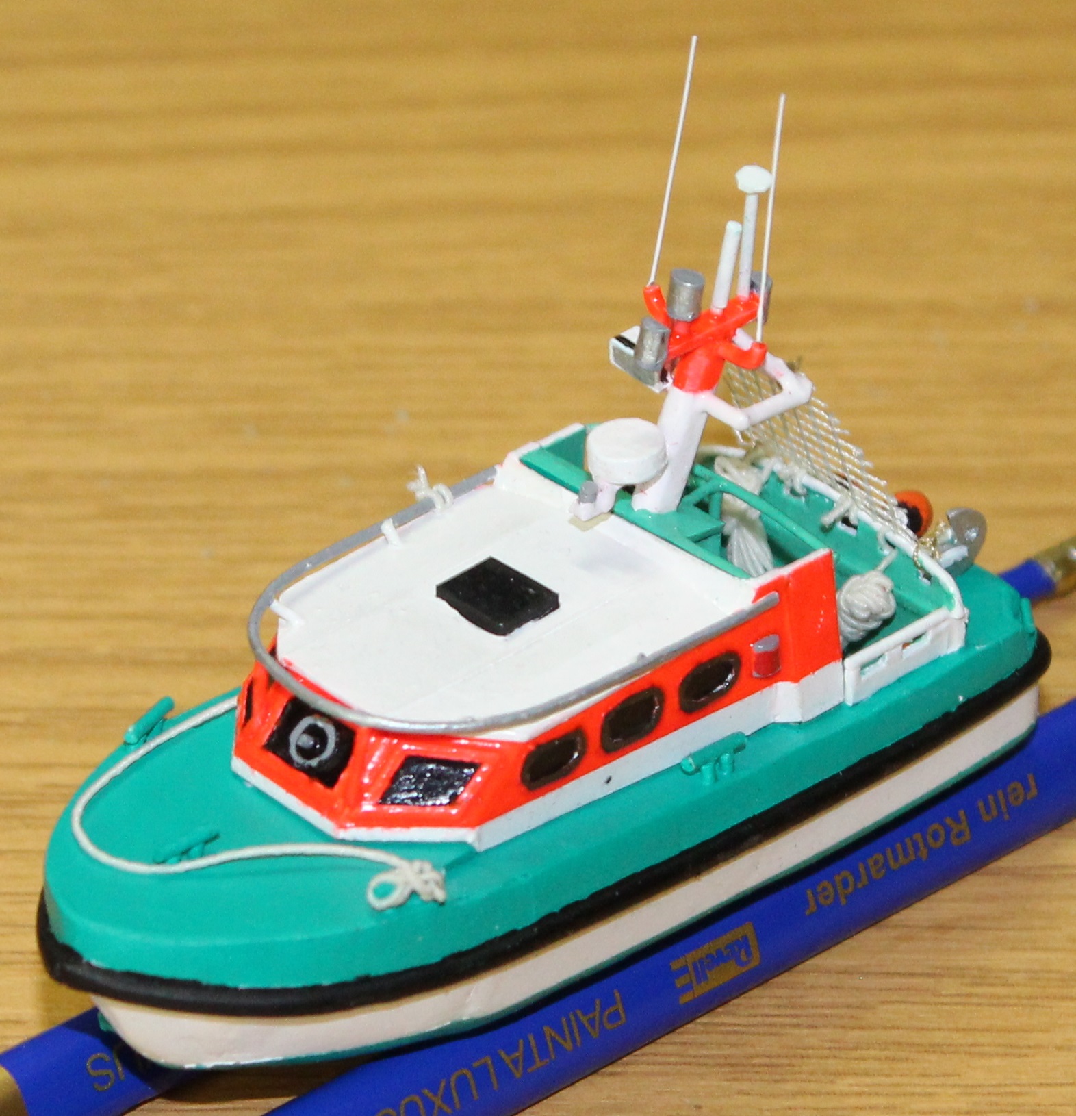 Dennoch wage ich mich mal gaaaanz weit aus dem Fenster und befürchte, Du hast eventuell nicht den richtigen Farbton genommen (oder den falschen Hersteller erwischt, z.B. Revell ist nicht gerade für die RAL-Treue bekannt). Soweit ich weiß, sollte das Smaragdgrün RAL 6001 sein, während der offene Aufbau/Stand RAL 6019 sein muss (http://modellbau-seenotkreuzer.de/farbgebung - passt auch zu diesen beiden Vorbildfotos, wobei sich durchaus auch hier zeigt, dass die Lichtverhältnisse immer eine Rolle spielen; Kunstlicht bei Modellfarben ist immer noch "übler"