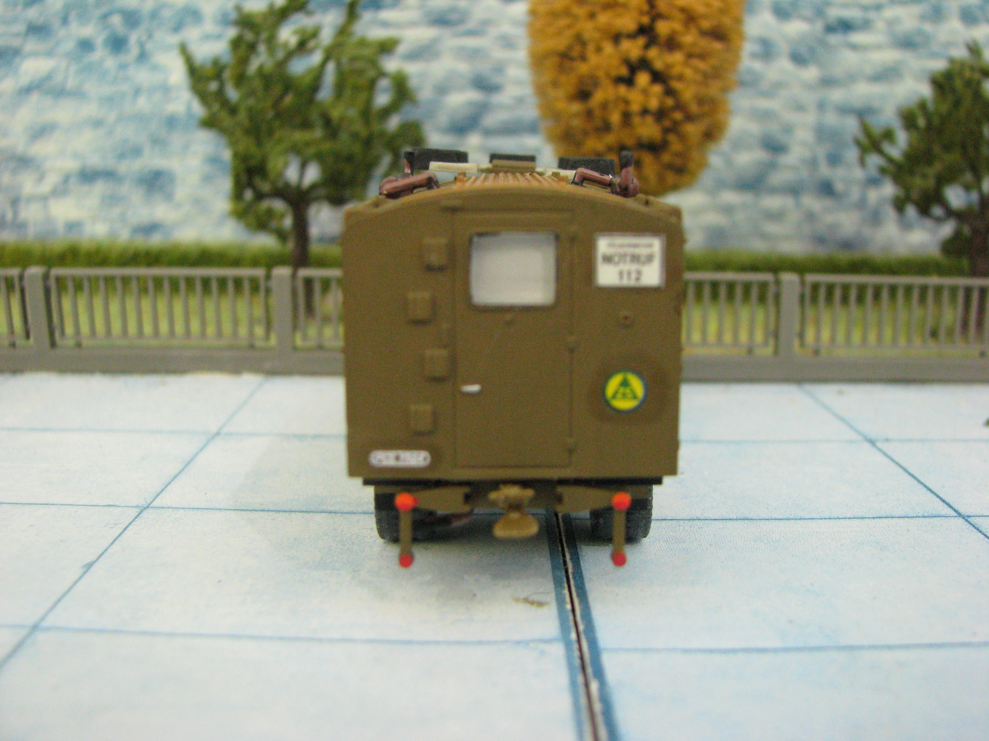 Ja das tut es und hier ist das Ergebnis. Es ist ein Magirus 120D 10A Lichtmastkraftwagen (LMKW) welcher in den 60er Jahren als erster der insgesamt 4 beschafft wurde und so zu sagen der Prototyp war. Im Gegensatz zu den späteren Fahrzeugen wurde hier die Stoßstange unverändert aus der GKW Produktion mit Seilwinde übernommen und die seitlichen Lüfter Gitter für den Generator sind noch hinter den Klappen versteckt. Dieses Fahrzeug war bis Ende der 80er Jahre noch im Dienst und wurde danach an einen THW Ortsverband abgegeben, wo er in blau lackiert wurde.Henning Wessel hat geschrieben:Müsste sich das Magirus-Modell nicht auch in Khaki realisieren lassen, sozusagen um das Bild abzurunden?