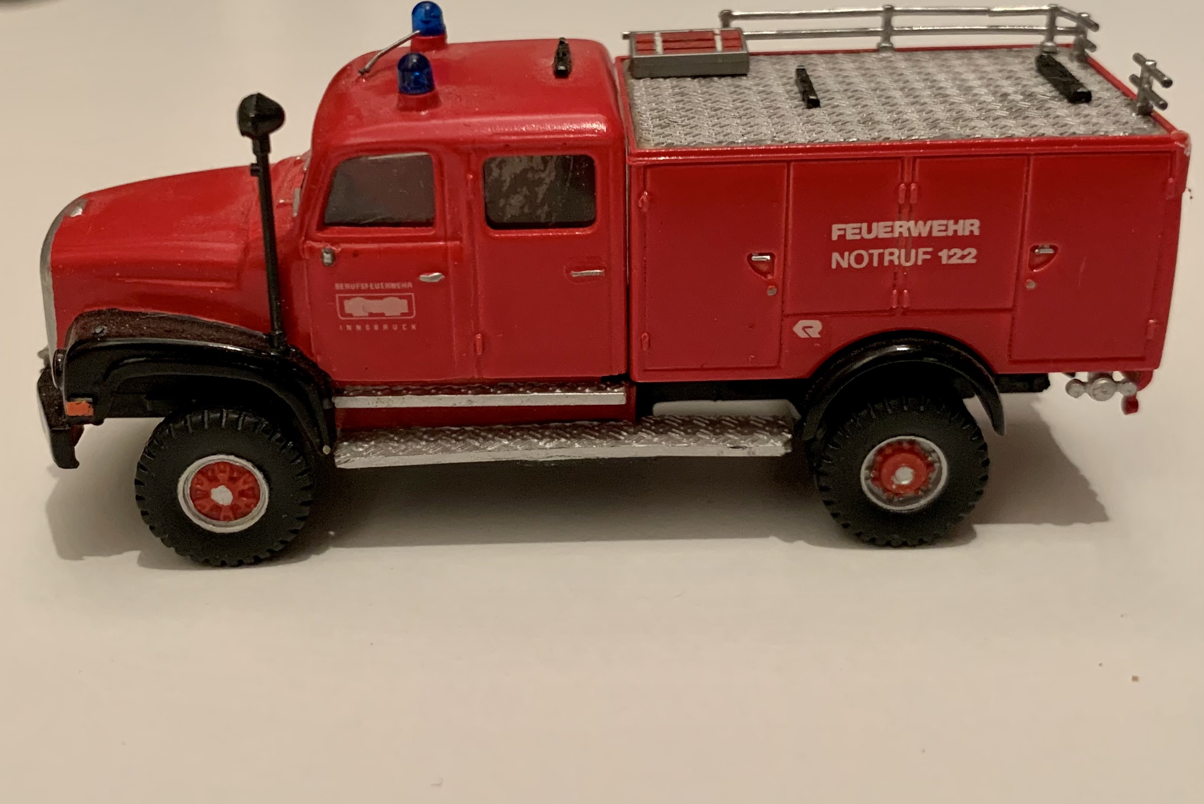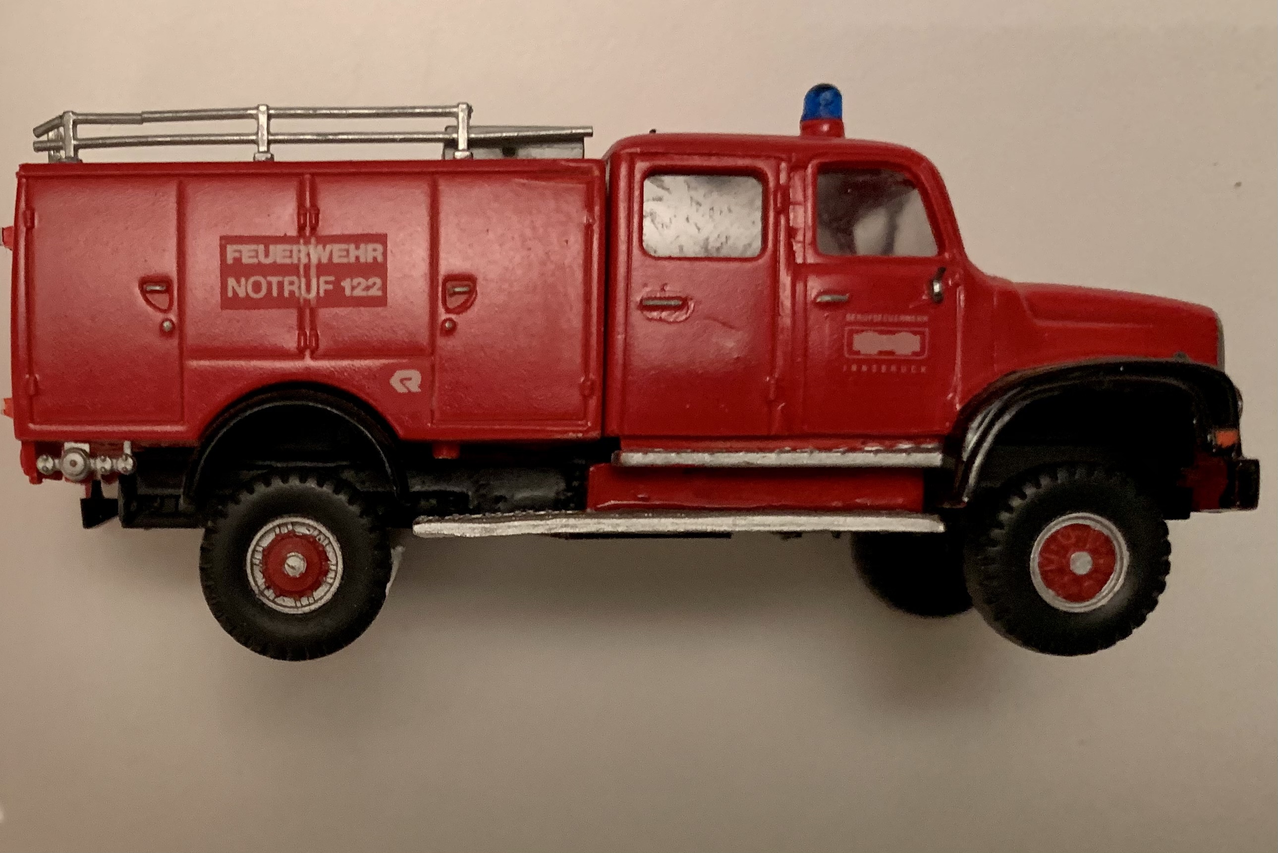 Das Modell trug Decals von der BF Innsbruck - das scheint mir allerdings Fantasie zu sein!? Ich habe sie jedenfalls entfernt und werde das Modell in Anlehnung an dieses Saurer 2DM TLF aus St. Gallen gestalten.
