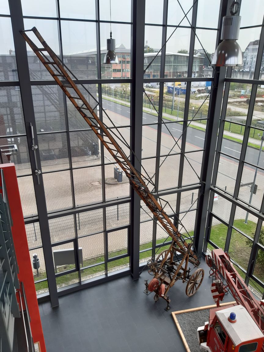 Seit kurzem bin ich stolzer Besitzer einer Magirus-Schiebleiter, Baujahr 1911. Ursprünglich war sie offenbar in einem Örtchen namens "Breitenstein" im Einsatz, dann hat sie jahre- bzw. jahrzehntelang in einem anderen kleinen Ort in Baden-Württemberg gestanden. Jetzt wird sie als Dauerleihgabe im Foyer der Hauptfeuerwache an meinem Wohnort Mülheim an der Ruhr ausgestellt...