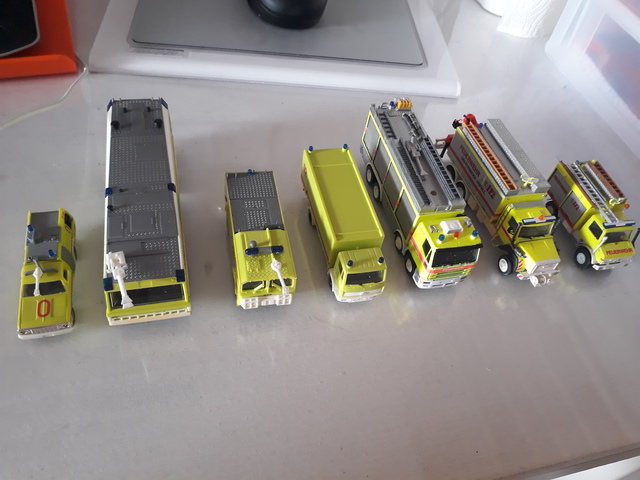 vom Hobby Haus Hetterich in Gelnhausen gab es auch einmal eine Serie lemongreener Fahrzeuge mit seitlicher Bedruchung - u.a. einen MB Sprinter T1N Kasten (GW/RTW) Basis Herpa, einen MB Atego LF16/12 Basis Herpa und ein MAN F2000 LF16/12 Basis Herpa in limitierter Kleinstauflage (handgerfertigte Fertigmodelle)