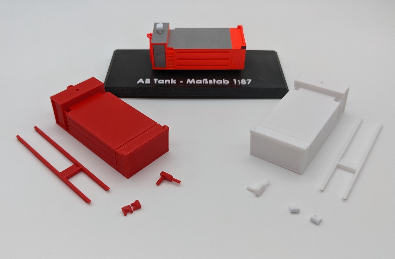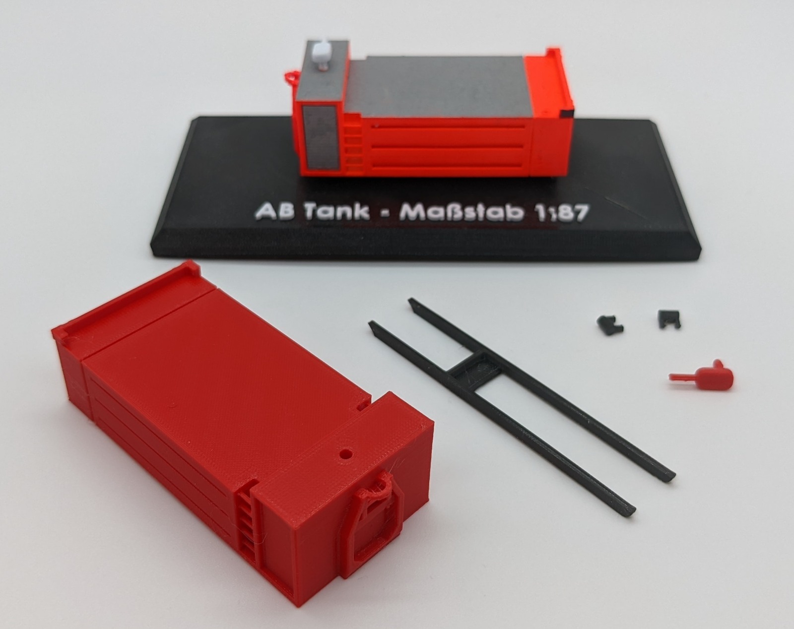 Abrollbehälter Tank. Komplett aus dem 3 D Drucker und mit der Spraydose lackiert.