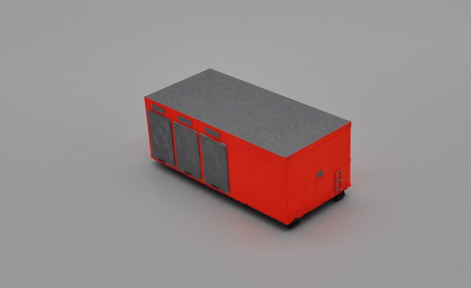 Abrollbehälter Hochvolt. Komplett aus dem 3 D Drucker und mit der Spraydose lackiert. Man möchte ja auch für die Zukunft bereit sein.