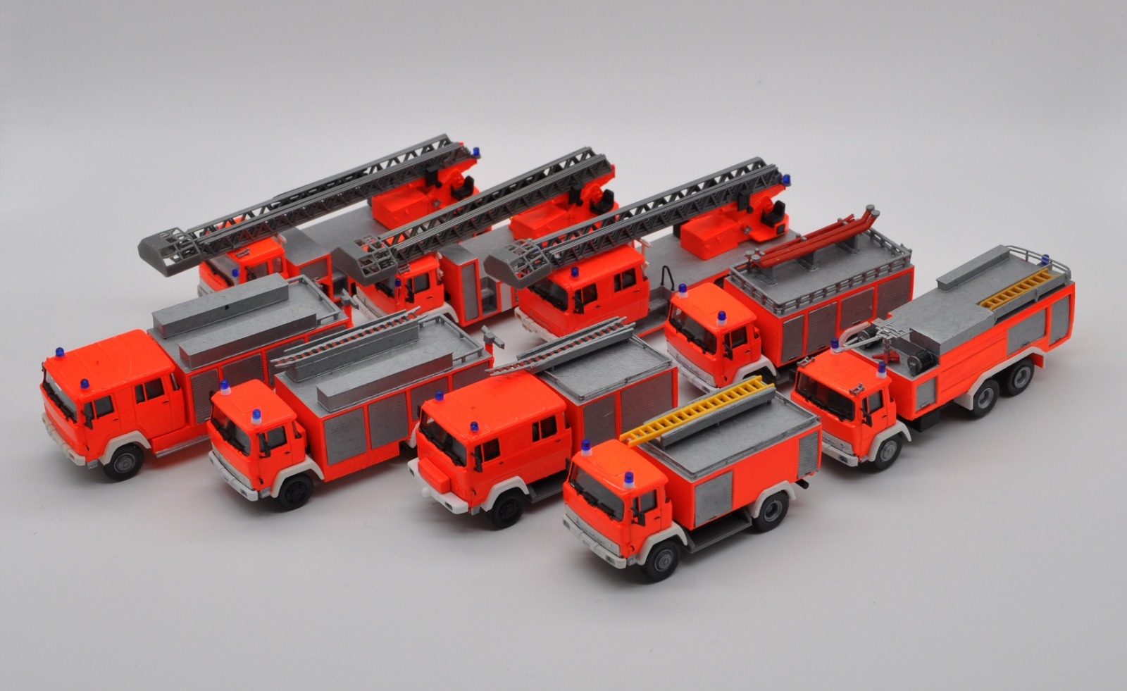 Weiter gehts mit Modellen aus dem 3 D Drucker. Diesmal das TLF 8/18 aus dem Haus Magirus. Kabine von Roco, der Rest (Fahrgestell, Trittbretter, Reling, Rollos, Saugschläuche, Leiterpritsche) aus dem Drucker. Lackiert mit der Spraydose in RAL 3024. Wenn jemand Interesse an den 3 D Druck Teilen hat kann er sich melden.