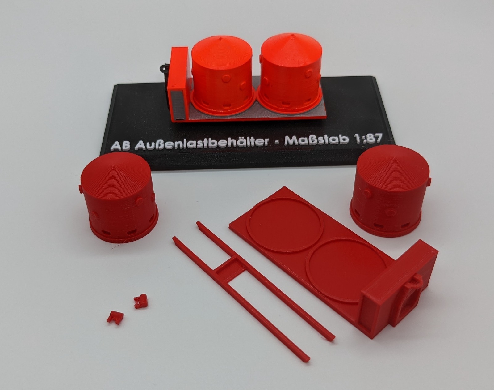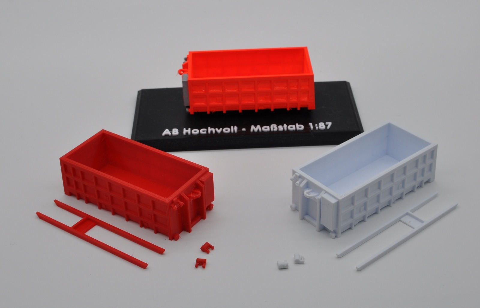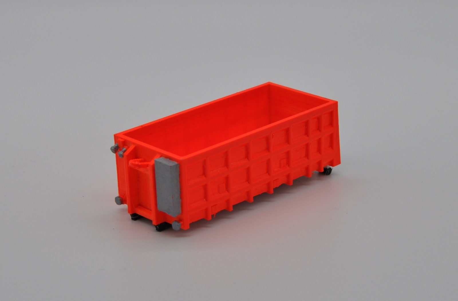 Abrollbehälter Außenlast. Komplett aus dem 3 D Drucker und mit der Spraydose lackiert.