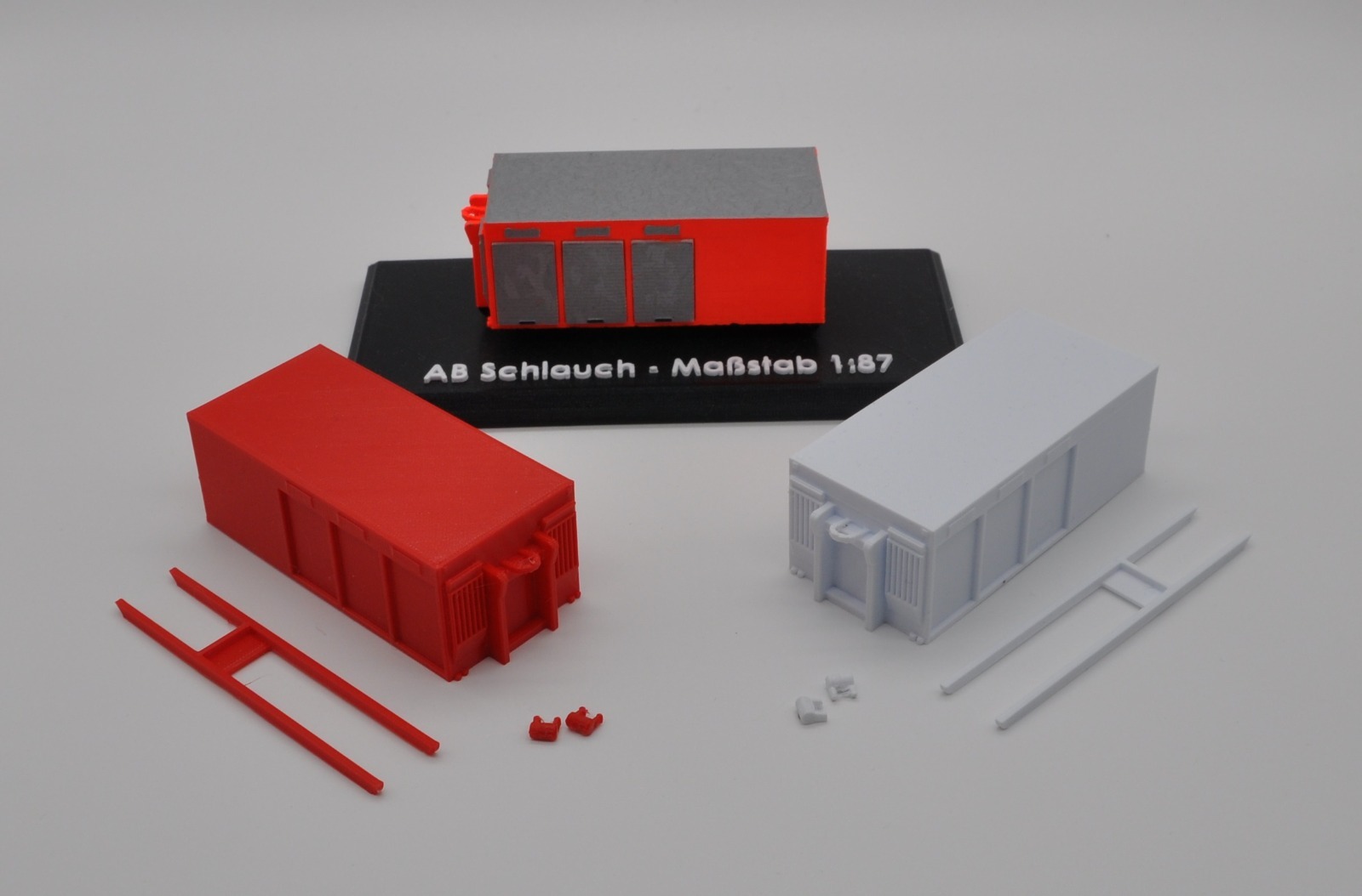 Abrollbehälter Atemschutz. Komplett aus dem 3 D Drucker und mit der Spraydose lackiert.