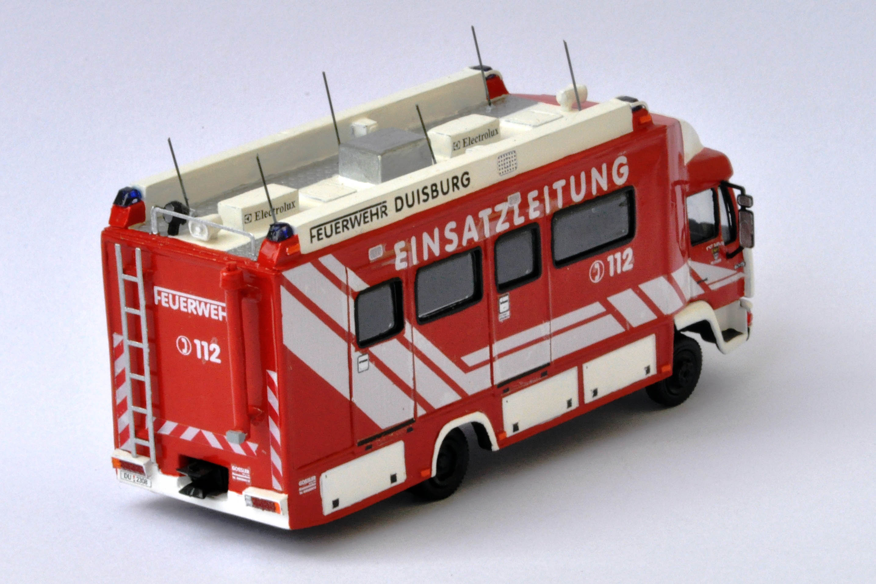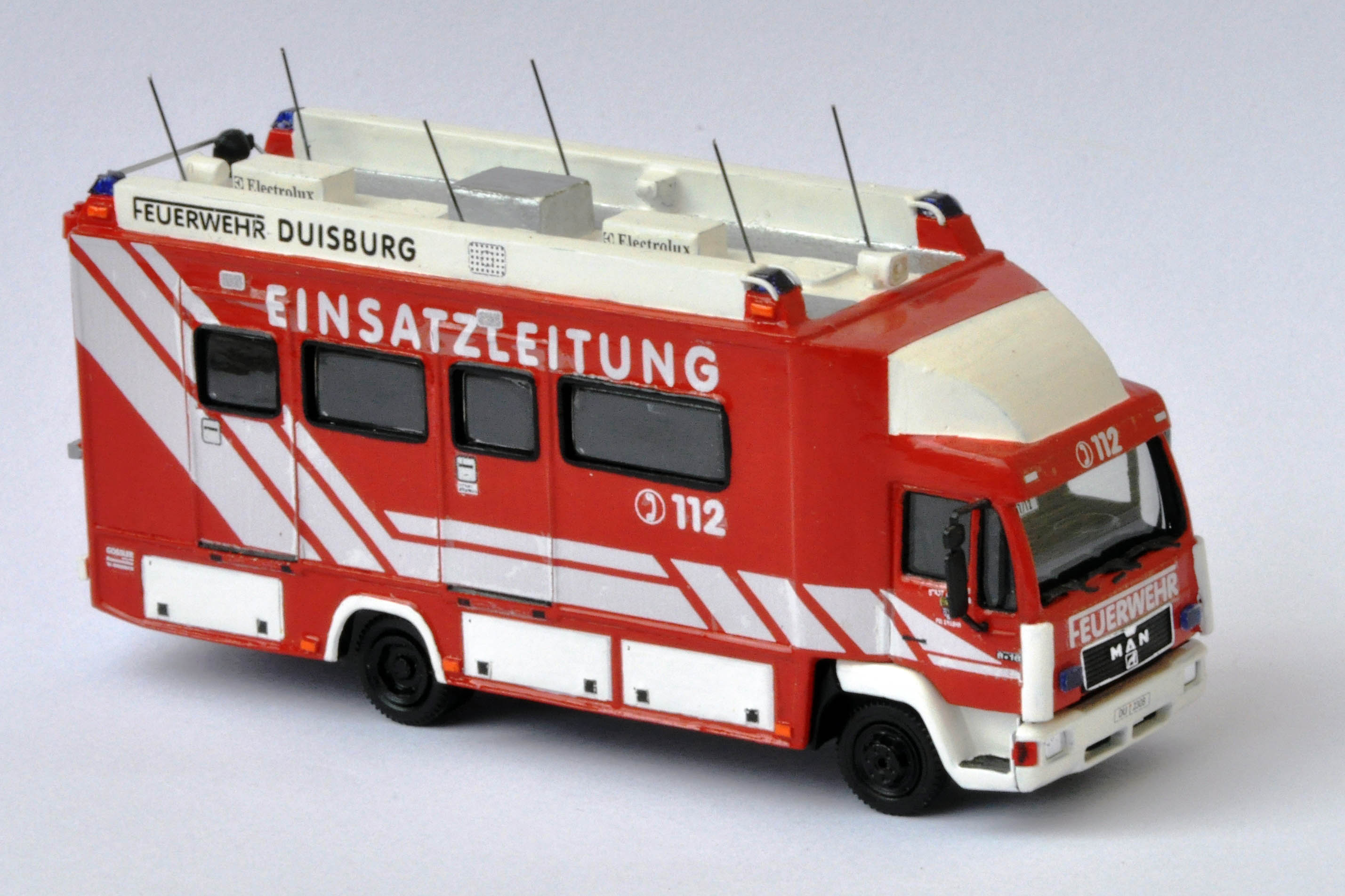 Hier nun mein zweites Dusiburger Modell, diesmal handelt es sich um einen ELW2 auf MAN L2000. Das Original ist in Duisburg an der Feuerwache 1 stationiert und wird bei Bedarf vom Personal der Leitstelle besetzt. Der MAN wurde von der Firma Gossler zum ELW ausgebaut.
