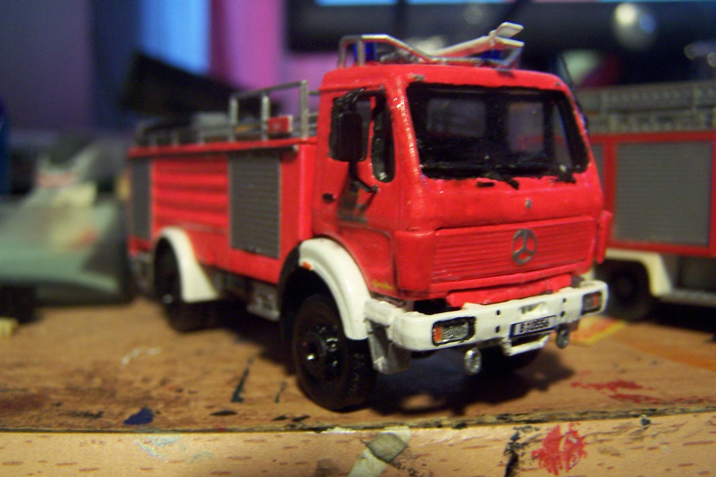 Zuletzt habe ich ein Preiser - Modell lackiert. Vorher natürlich gründlich gesäubert mit Spüliwasser, schrubben mit einer alten Zahnbürste, abspülen und anschließend mit Silikonentferner - "vom Lacker geschnorrt" - behandelt. Lackiert in Ral 3000, Sprühdose von Robbe. (Die mit den Fernsteuersachen). Das Ergebnis ist so- während des Trocknens ergibt sich eine schöne glatte glänzende Oberfläche
