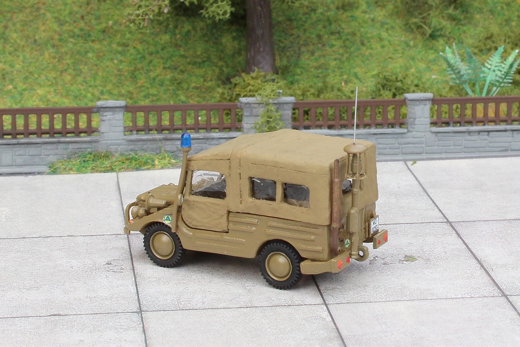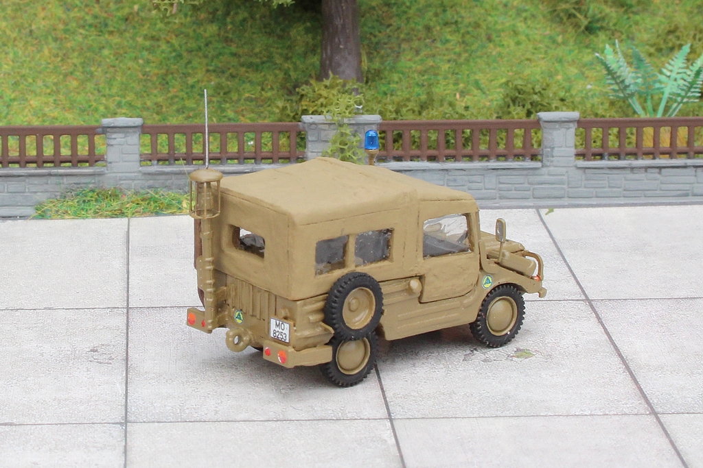 - Pritsche mit Plane vom Preiser THW Magirus Eckhauber, in der Höhe um 3,5 mm gekürzt