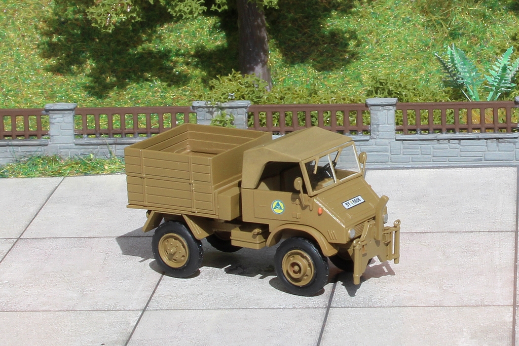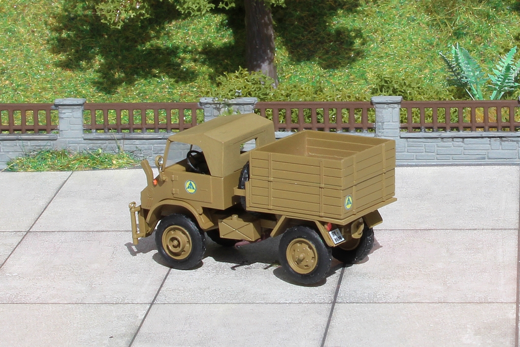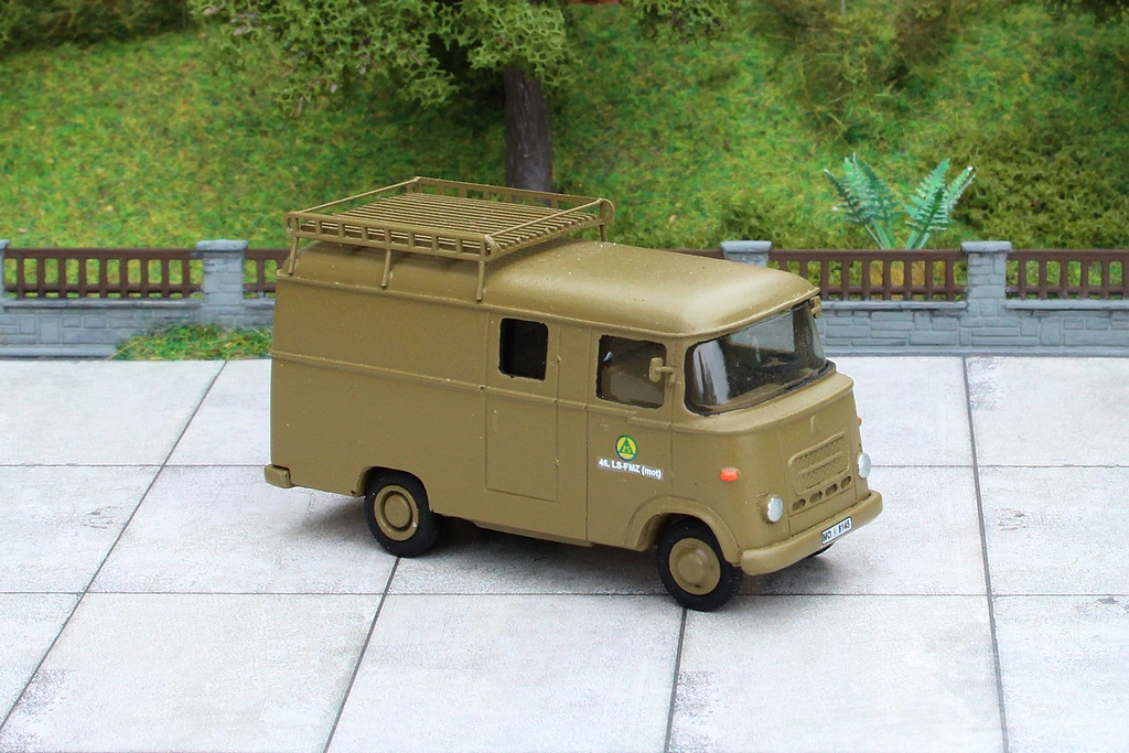 Ich habe aus dem Preiserbauteil Pritsche/Plane einen ca. 3,5 mm hohen Streifen herausgesägt, um die Pritsche und die Plane vorbildgerecht zu gestalten. In dem Planenteil habe ich dann Vorne eine Öffnung für eine entsprechende Kunststoffplatte mit Bretterstruktur gesägt.