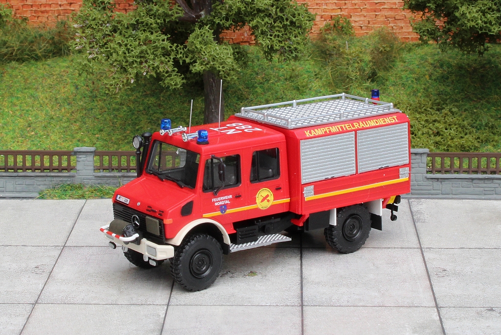 Bei dem Fahrzeug kam ein gebrauchter Unimog mit Doppelkabine zum Einsatz, der 2005 in den Werkstätten der Feuerwehr Nordtal mit einem gebrauchten Kofferaufbau eines MKW versehen wurde. Der Gerätewagen ist mit Geräten und Ausstattung zur Ortung und Beseitigung von Kampfmitteln ausgerüstet. Der Heckgeräteraum ist für den Transport von Kleinmengen Kampfmitteln in speziellen Transportbehältern vorgesehen.