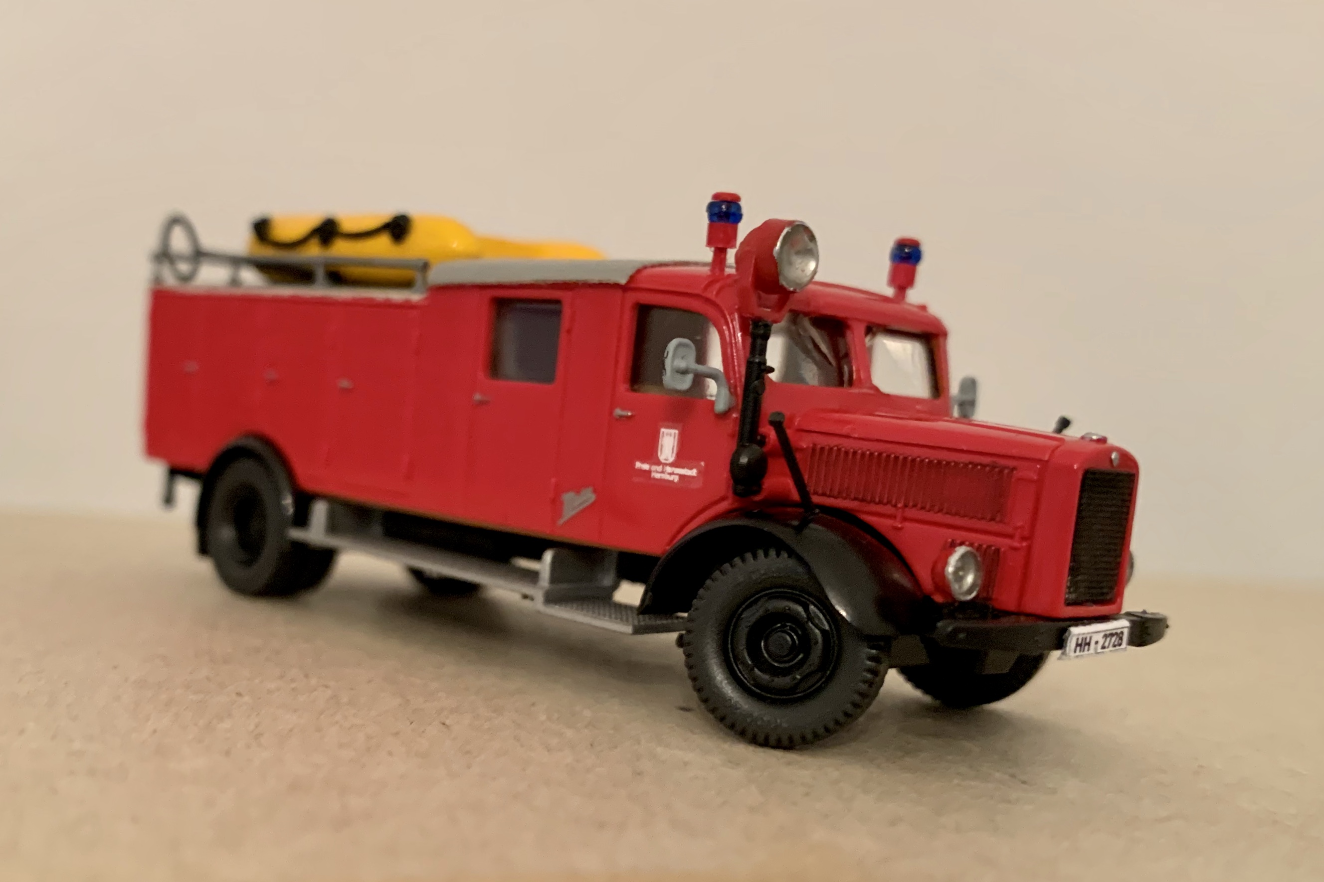 Und was ist bei der spontanen kleinen Bastelfreude herausgekommen? Nunja, zunächst immerhin ein weiteres KLF der ersten Generation - ähnlich dem bereits hier eingangs vorgestellten. Das Vorbild ist abgebildet bei Gihl, Feuerwehr Hamburg (2003).