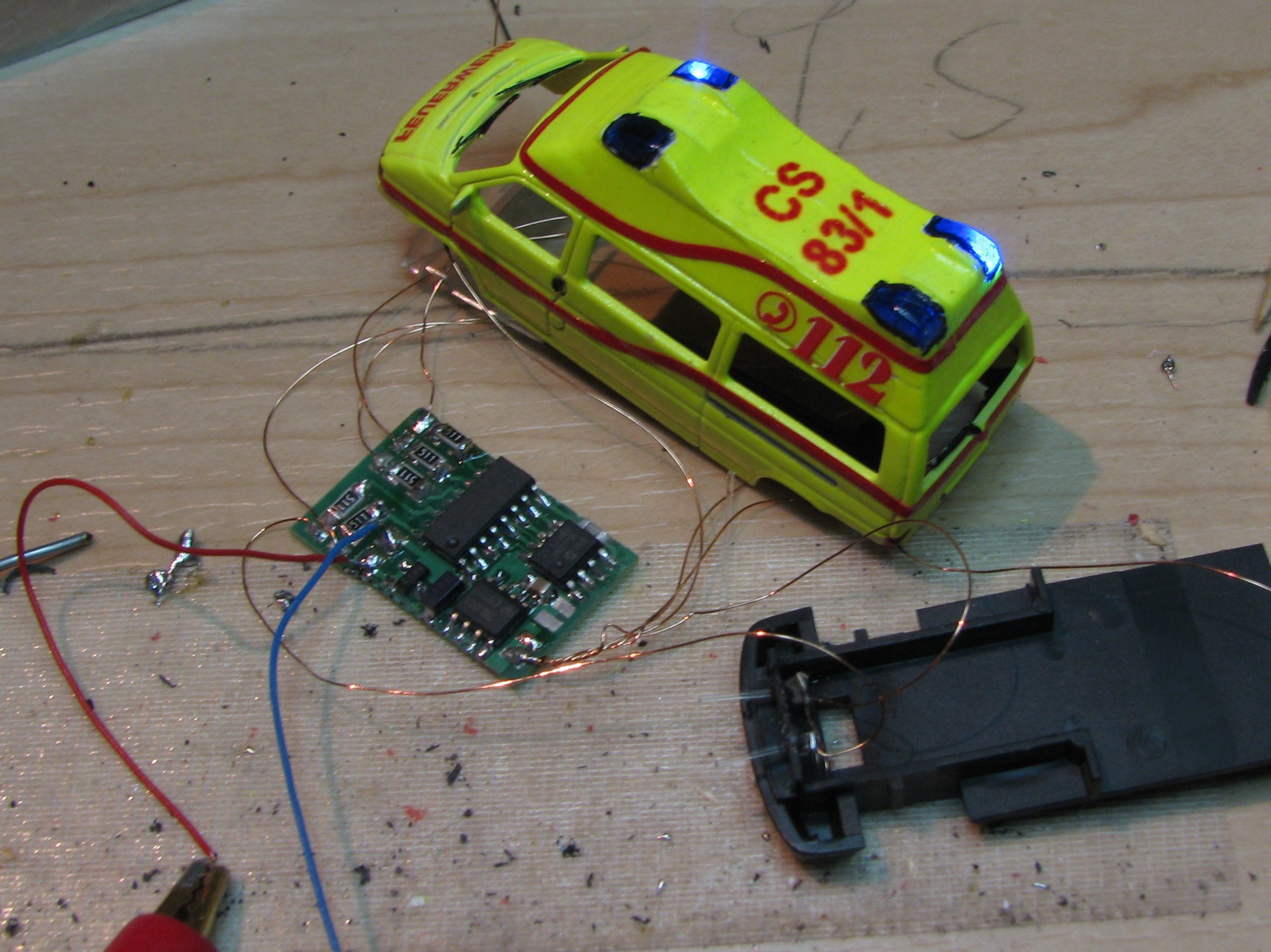 Die LC-** Schaltungen passen in die wenigsten Modelle, in Löschwagen oder US-Ambulanzen bekommt man sie zur Not mit ein paar Kniffen rein, ansonsten kann man auch auf die FCS-Schaltungen oder die kleinen SMD-Wechselblinker zurück greifen. Da ich in der Regel Modelle für den festen Einsatz in Dioramen gebaut habe, spielte die Größe der Schaltung eine untergeordnete Rolle, sie kann ja getrost unter der Anlage installiert werden. Das nur mal so am Rande erwähnt. ;-)