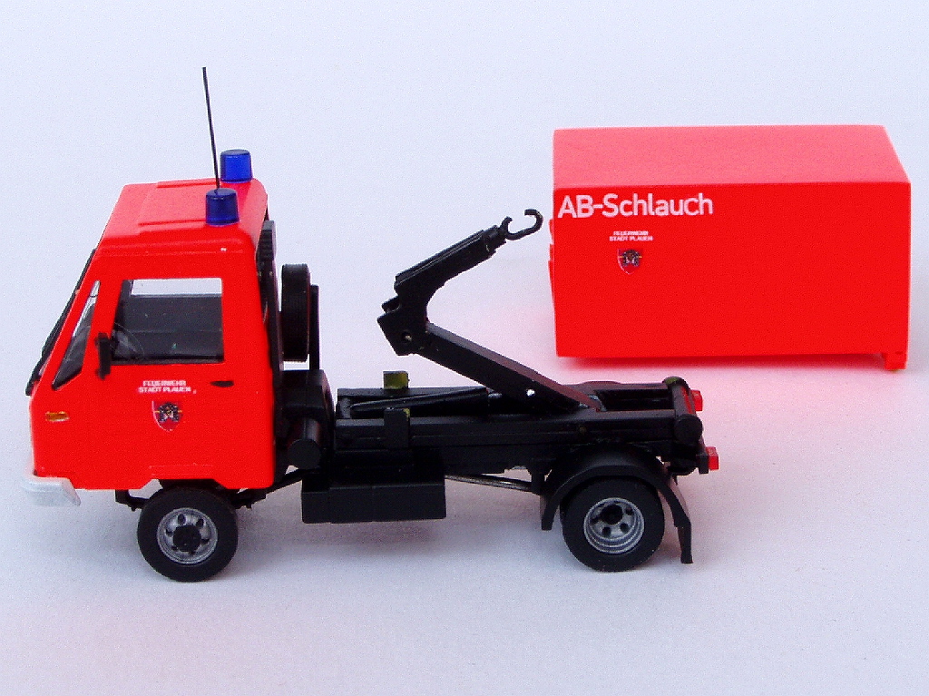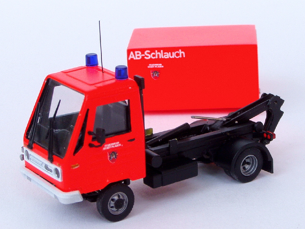 Nach reichlich einem Jahr mal wieder ein neues WLF von mir. Obwohl neu kann man eigentlich nicht sagen. Es ist das erste Wechselladefahrzeug der Plauener Berufsfeuerwehr überhaupt. Ca. Anfang bis Mitte der 70er Jahre kamen diese bis dahin hauptsächlich als Sperrmüllcontainer genutzten Behälter und ihre Trägerfahrzeuge auch in den Dienst der Feuerwehr. Mir liegen leider nur Bilder vor, an denen ich keine Rechte habe. Aber sie zeigen den einfachen Schüttcontainer und nicht den allseits bekannten Schlauchcontainer. Der SC wird aber noch folgen. Dann aber mit FW-Lackierung des Fahrzeugs, wie sie ab 1987 üblich war, also mit "Bauchbinde".