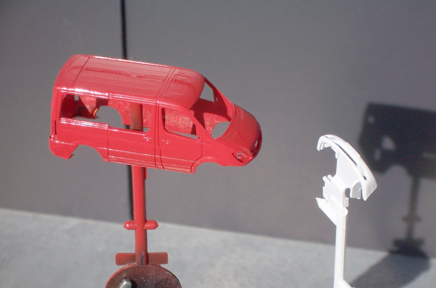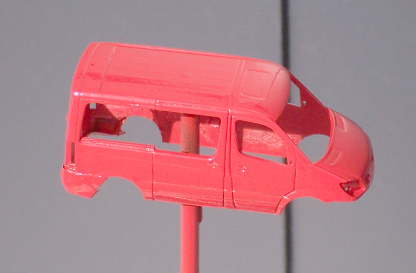 Würde ich das noch mal machen, würde ich ein paar Schnitte wahrscheinlich an anderen Stellen anbringen (z.B statt entlang der Türlinien einen Schnitt mitten durch die Schiebetür - sowas kann ich dann besser versäubern - einige Fehlerstellen sind jetzt nämlich bei Der Lackierung erst richtig sichtbar geworden; zum Glück kommen ja irgendwann noch Decals drauf!).