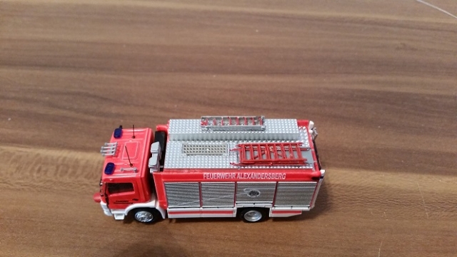 Hallo zusammen, nach einiger Zeit wieder etwas neues aus Alexandersberg. Ich stelle euch hier den neuen RW der Feuer- und Rettungswache 2 - Dönche/West vor. Der RW entstand aus dem Rietzemodell "Feuerwehr Wasserburg" und wurde mittels Spraydose in RAL 3024 umlackiert. Gesupert wurde der RW mit Presslufthörnern von Busch, einer Mehrzweckleiter von MMH-Modellbau, den Sandblechen aus dem beiliegenden Zubehör, einer Arrowstik-Anlage am Heck von DS, einer Eigenbau-LKW-Rettungsplattform "Modell Alexandersberg" und verschiedenen Kleinteilen aus der Bastelkiste und Decals verschiedener Hersteller.