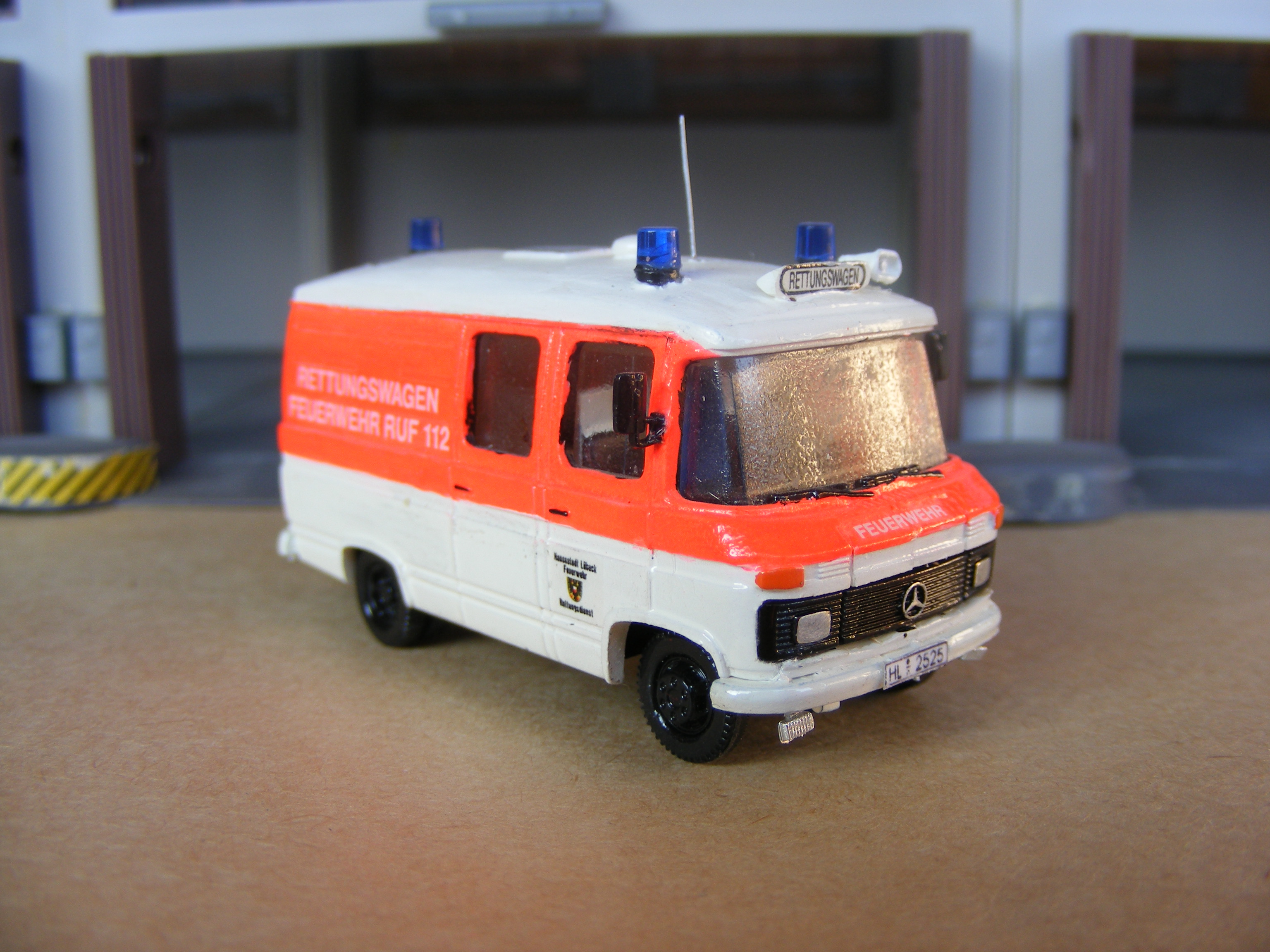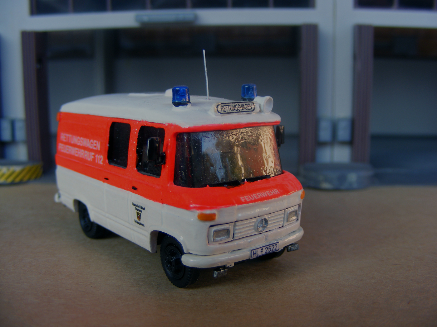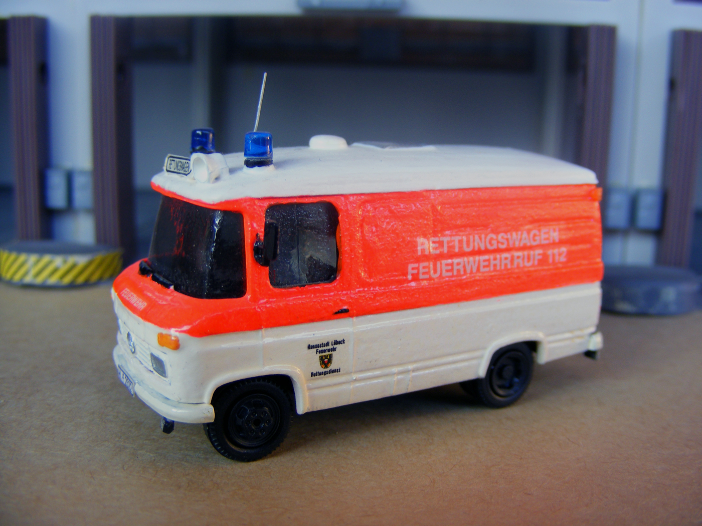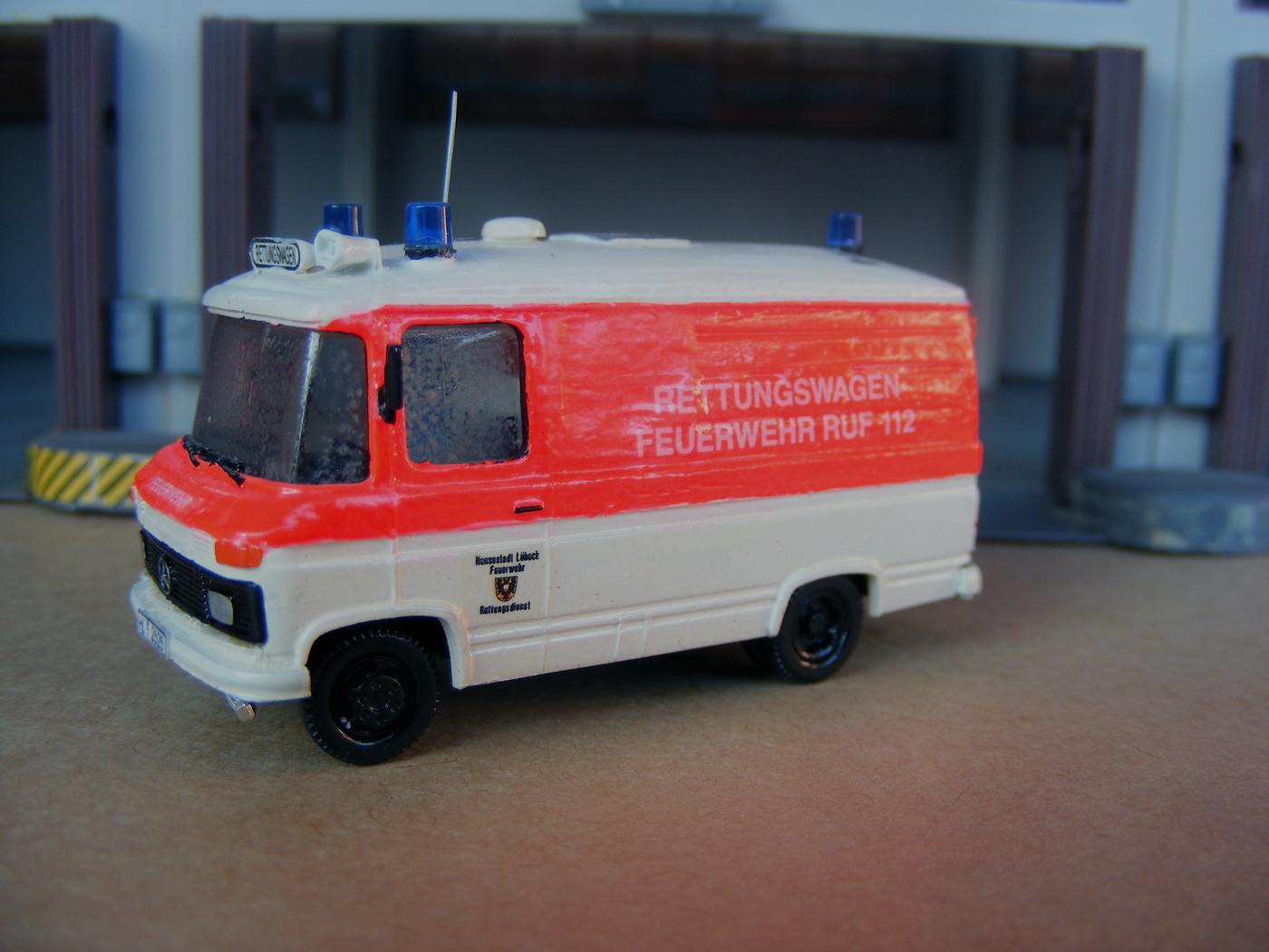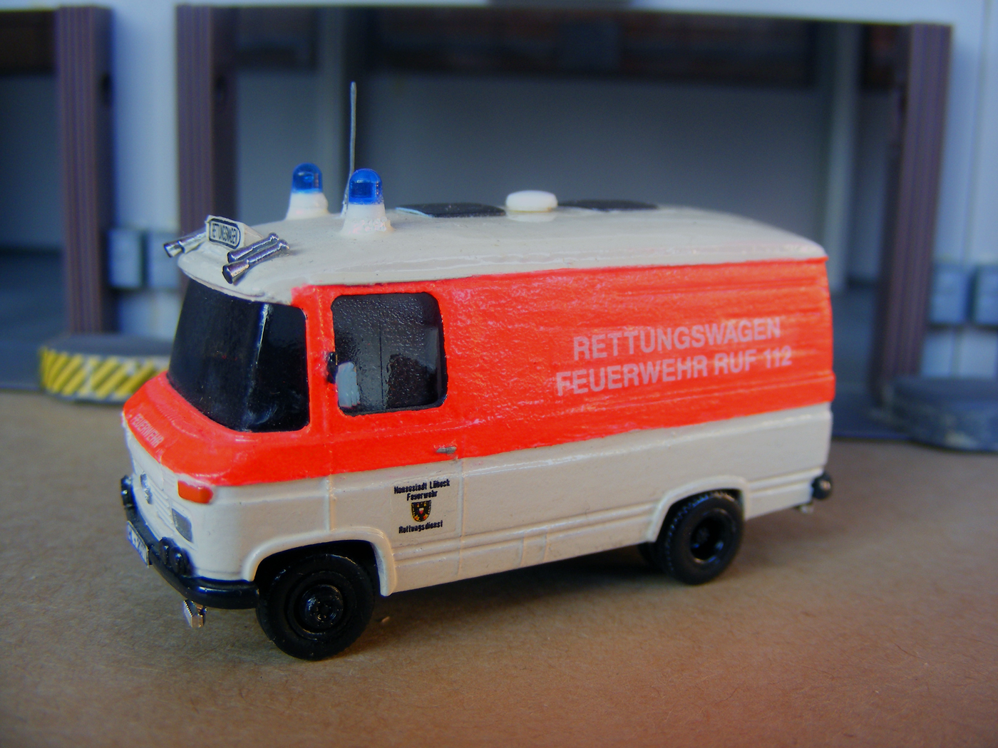 Hier geht's weiter. Ich stelle jetzt ein paar Rettungswagen der Feuerwehr Lübeck auf den Düsseldorfer Fahrgestell vor. Alle Modelle sind auch schon 20-25 Jahre alt. Bei den 408er Mercedes wird es dank des Brekina Modells von den jeweiligen Fahrzeugen eine Neuauflage geben. Alle hier vorgestellten wurden noch auf Wiking Basis gebaut. Kommen wir nun zu den einzelnen RTWs.