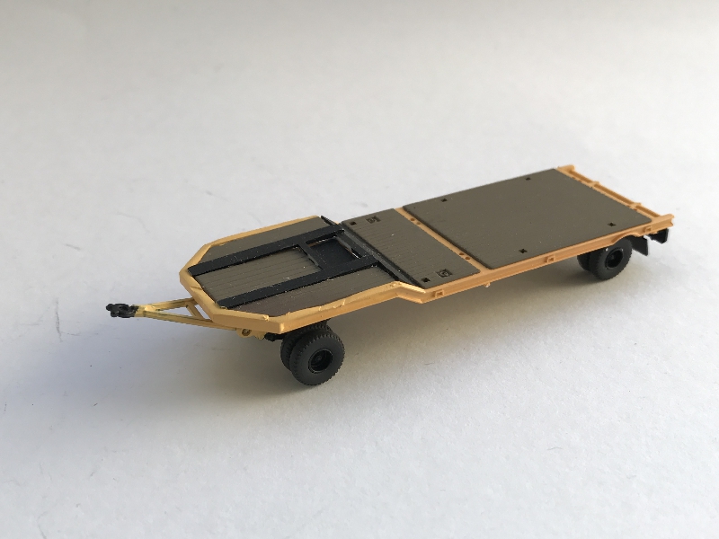 Mein Modell entstand aus einem um zwei Achsen gekürzten und etwas umgebauten Kibri-Tieflader.