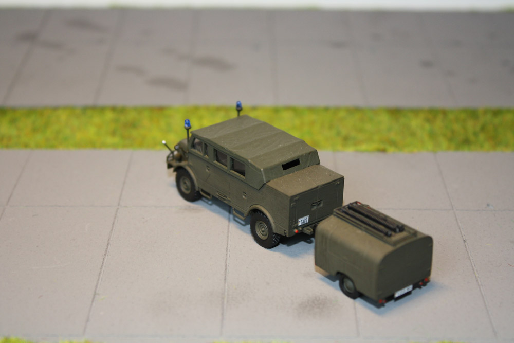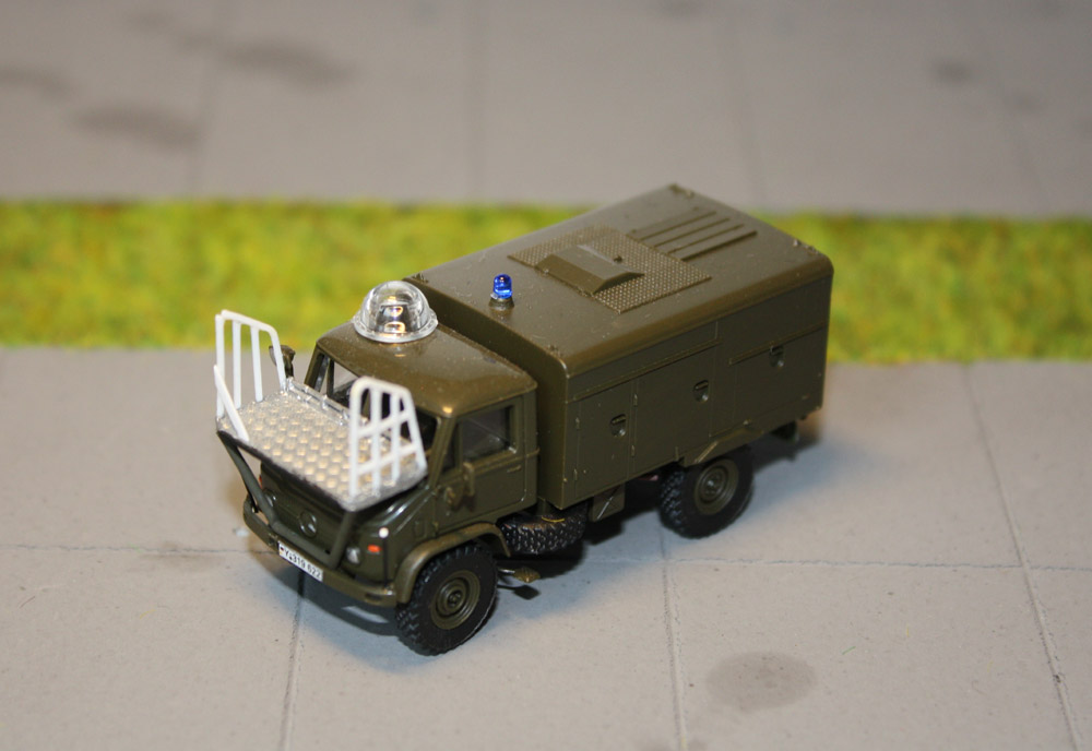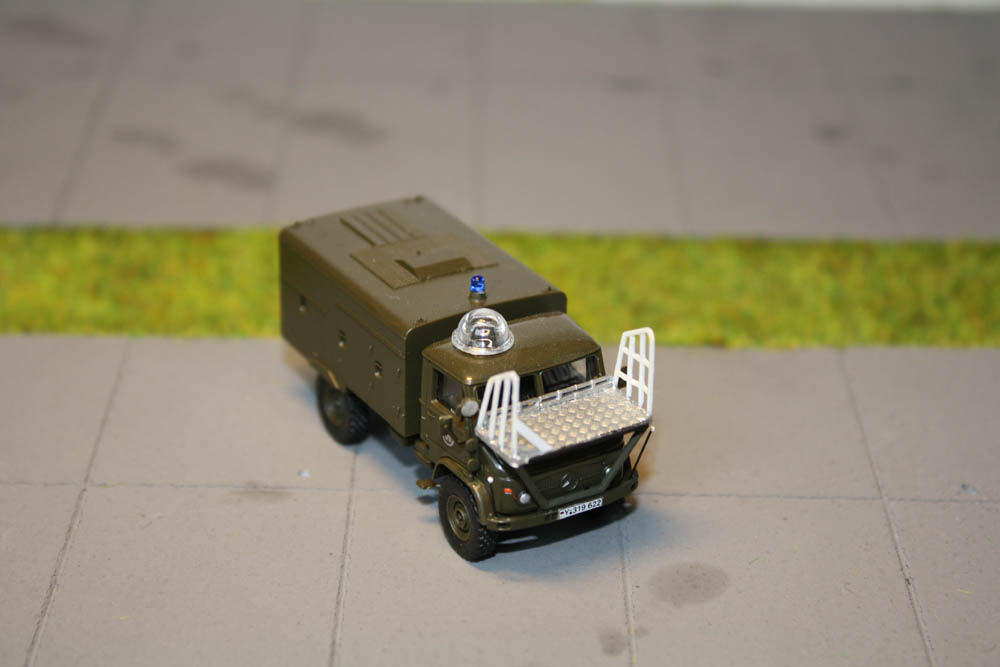 Reifen sind Geländereifen von Roco, Fahrgestell vom Herpa Teileservice entsprechend angepasst.