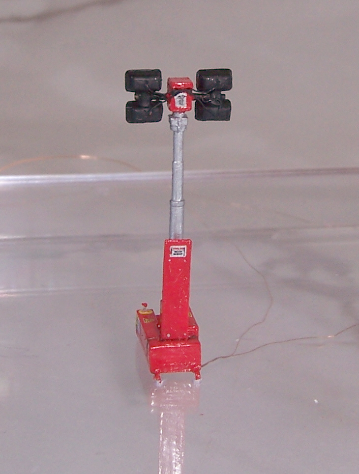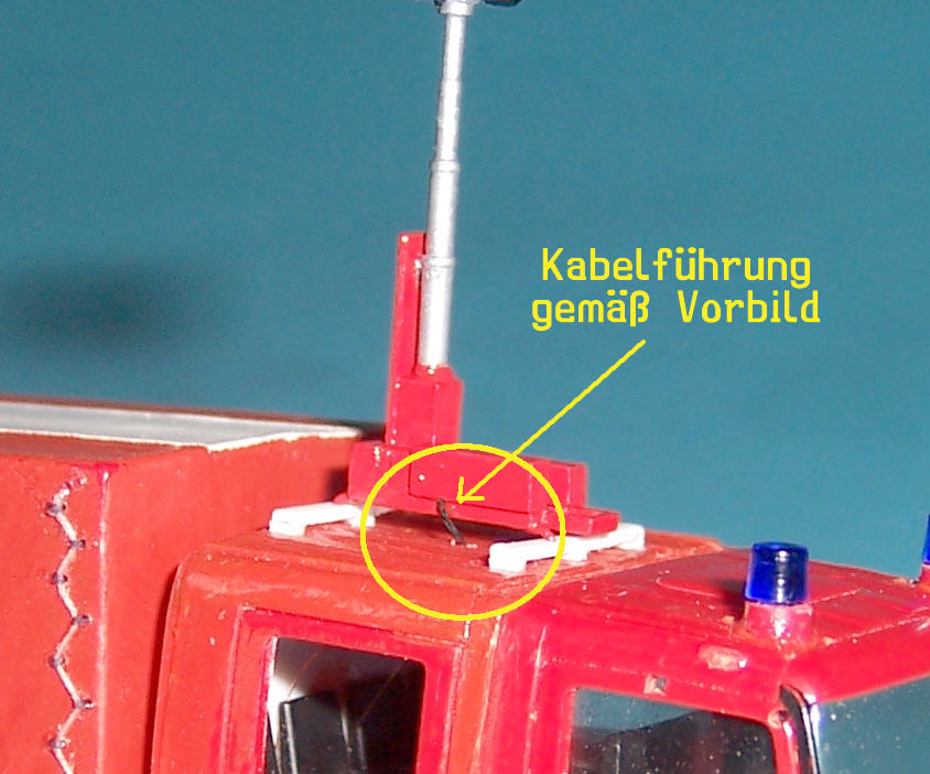 Sorgen bereiten mir aber mittlerweile die vier Scheinwerfer am Mast, denn die dafür vorgesehenen Teile von Rietze (oder sind die von Herpa?) kann ich wohl doch nicht nehmen, die passen nicht. Wäre ja auch zu schön gewesen, wenn ich mal was Fertiges hätte verwenden können!