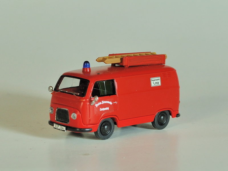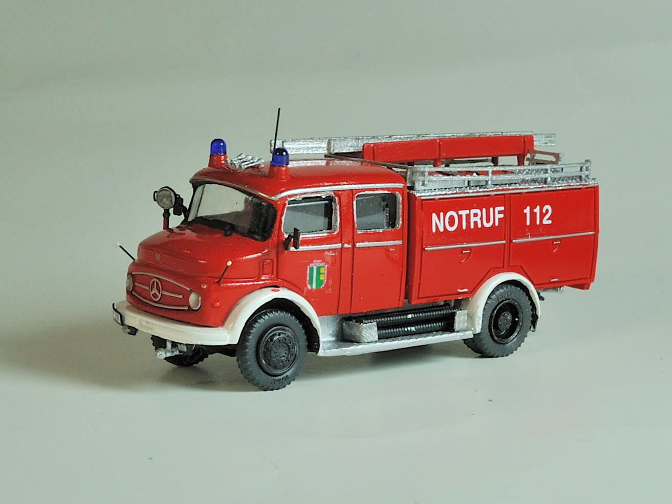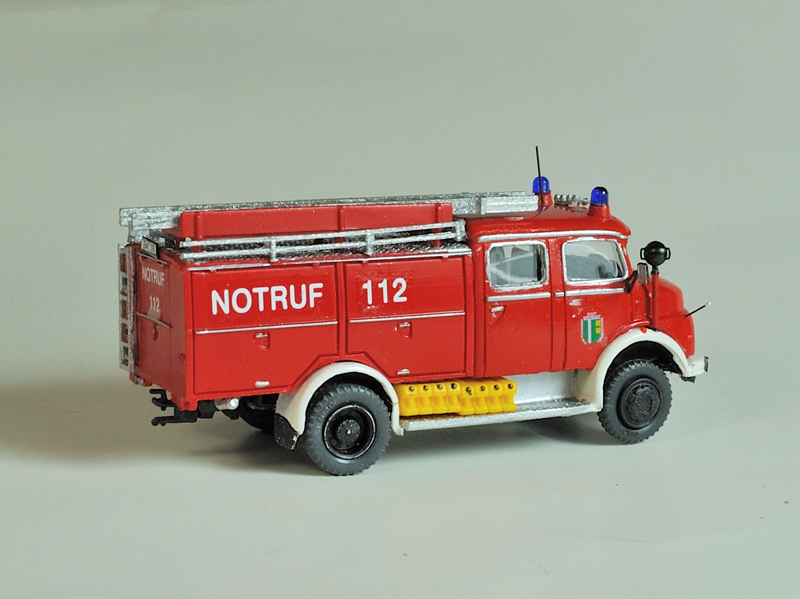 Der Originalaufbau ist bombiert, der Preiser-Aufbau trapezförmig. Für die Modellumsetzung mußte daher ein Roco-Magirus-LF dran glauben, das von den Abmessungen her erstaunlich gut paßt.