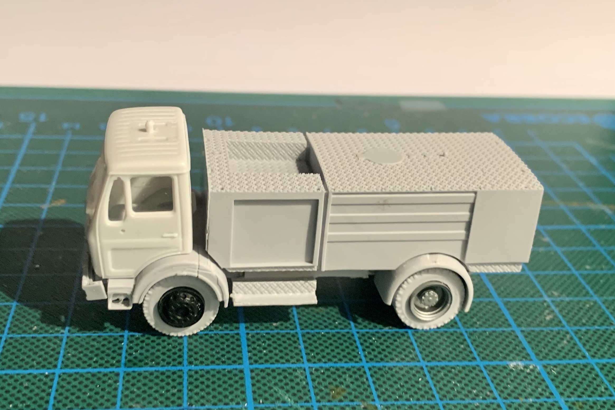 Das Pendant als LF16 ist überarbeitet (u.a. Türgriffhöhe) und wird derzeit als streifenfreier ResinGuß ohne Stützstrukturen produziert. Beide Aufbauten sollten spätestens ab Ende Mai verfügbar sein!