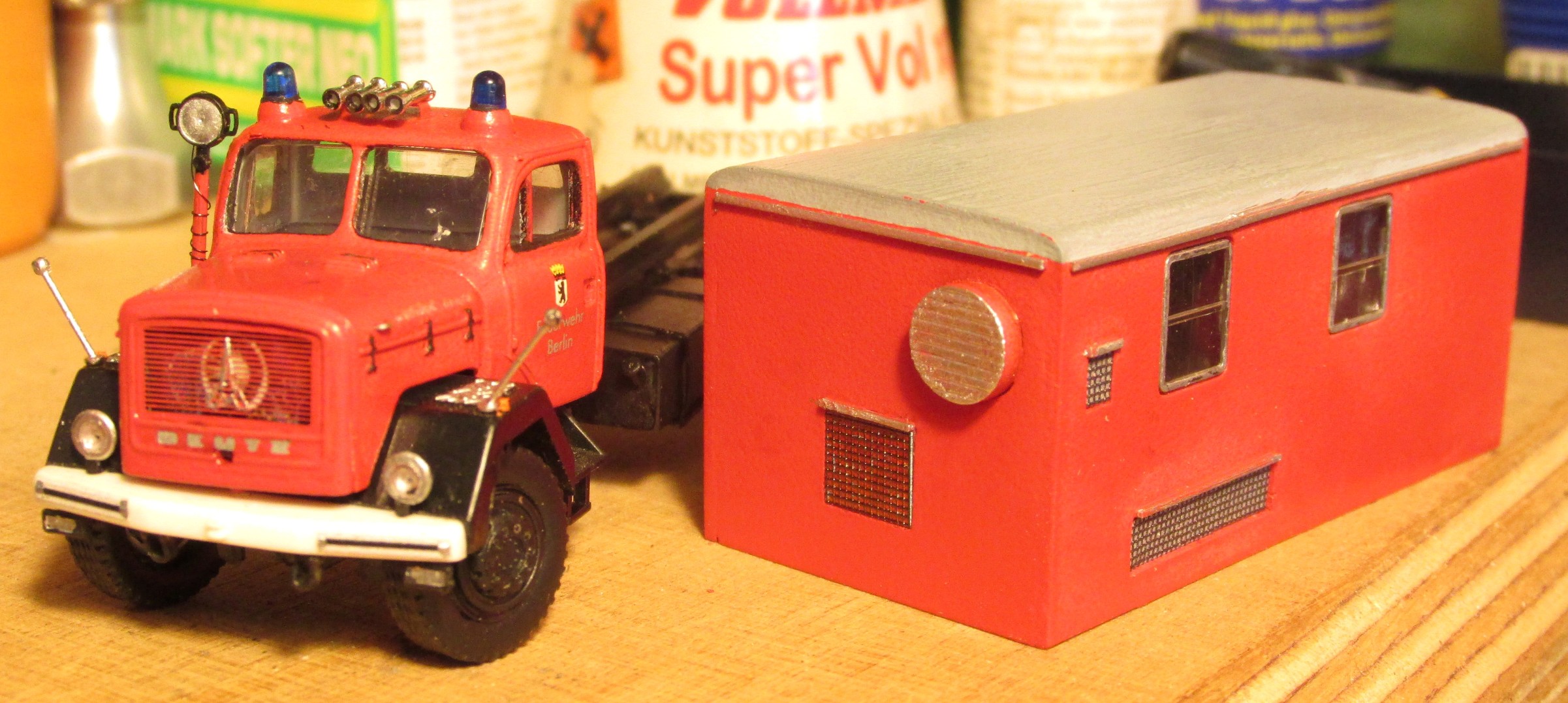 Na, dann habe ich mit meiner Vermutung ja daneben gelegen. Ich hatte nämlich auf die Verwendung des alten Wiking WLF-Aufbaus(Nach Vorbild AB-AS der BF Hannover getippt).Guido Brandt hat geschrieben:Jo - als Grundlage für den Aufbau diente die Raumzelle, und das Fahrgestell kommt auch von Preiser.