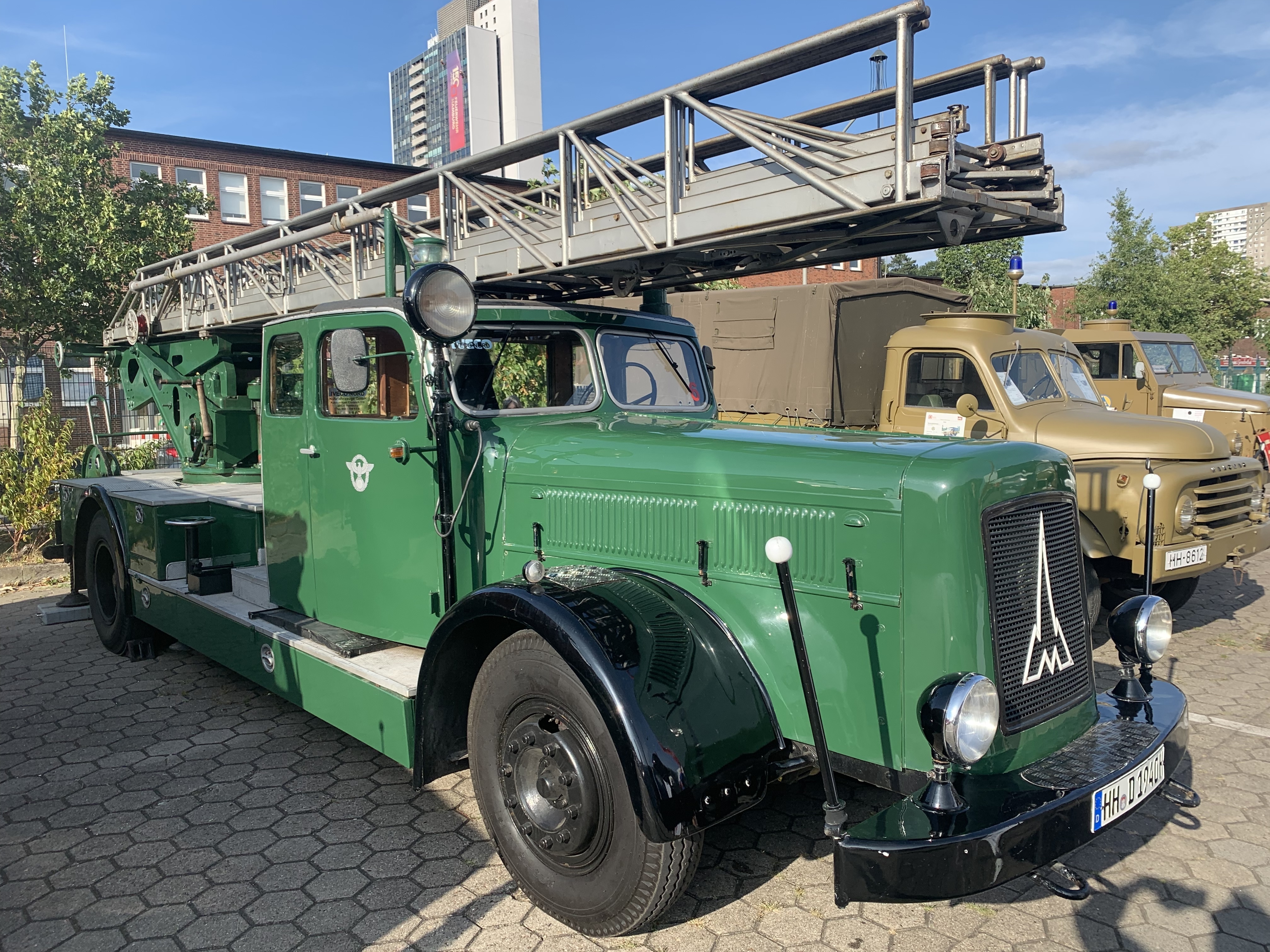 - der gesamte Fuhrpark der Feuerwehr-Historiker (HANSA-LF, Rundhauber-LZ, Pullman-LZ, LSHD-/KatS-Fz etc. etc.) - und die Hydraulik der grünen, 82 Jahre alten KHD KL 26+2 von Iveco HH in Aktion zu sehen!