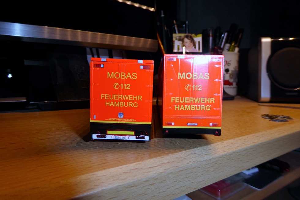 Das erste Sondermodell des kleinen Autoladen kam irgendwann in den 90er heraus und stammte von Herpa. Hier waren die Proportionen passend. Das Modell, was im Thread vorgestellt wird stammt hingegen von Rietze und wurde 2014 ebenfalls als „Neuauflage „ vom kleinen Autoladen herausgebracht. Schließlich gab es in einer Feuehrpackung von Rietze eine dritte Variante und die Zugmaschine einzeln.