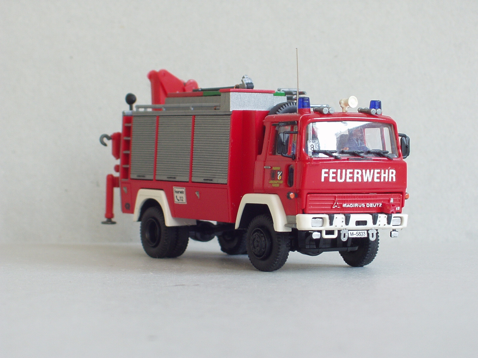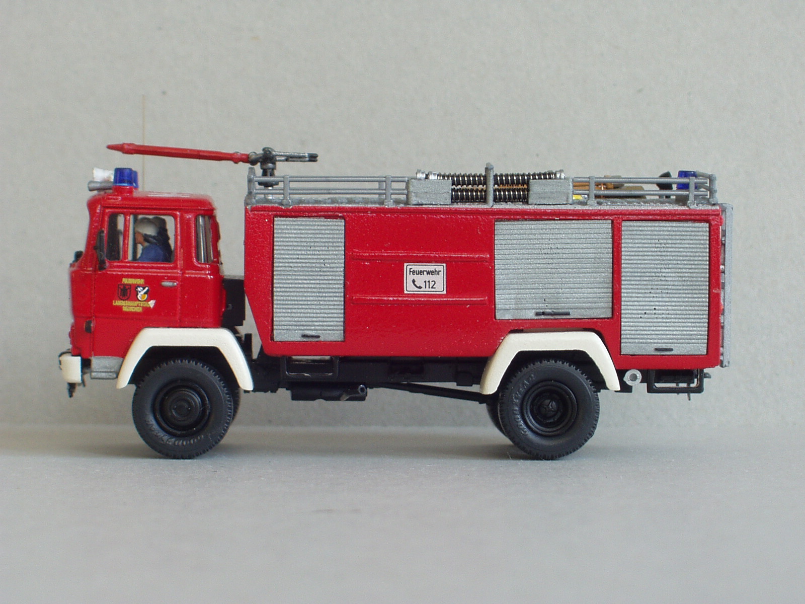 Das Preiser-Modell wurde lediglich mit einer Besatzung, einer feuerwehrtechnischen Beladung, Kleinteilen und Decals versehen.