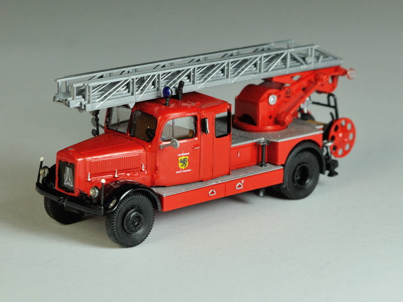Nachbauen möchte ich diesmal alle Fahrzeuge (inklusive Rettungsdienst – auch der ist ebenfalls augenscheinlich komplett dokumentiert), die seit Gründung der BRD 1949 im Einsatz sind oder waren, ausnehmen werde ich nur Leihfahrzeuge. Damit wäre das älteste Fahrzeug Baujahr 1923, die Kutschen davor lasse ich sein - vielleicht geb' ich die ja bei Jürgen in Auftrag