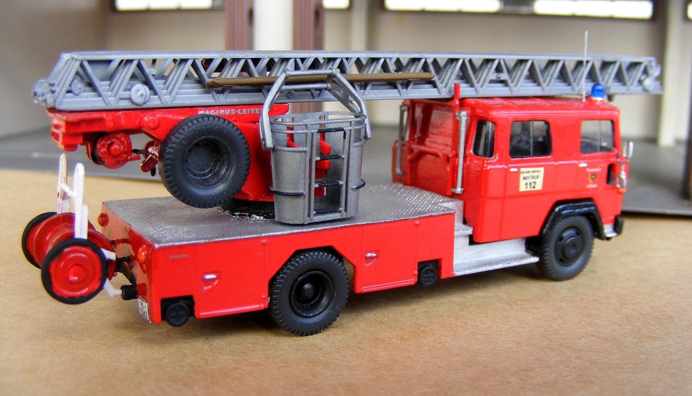 Das Grundmodell beider Drehleitern war das von der Firma Preiser. Es wurde die Eckhaube gegen eine Rundhaube getauscht.