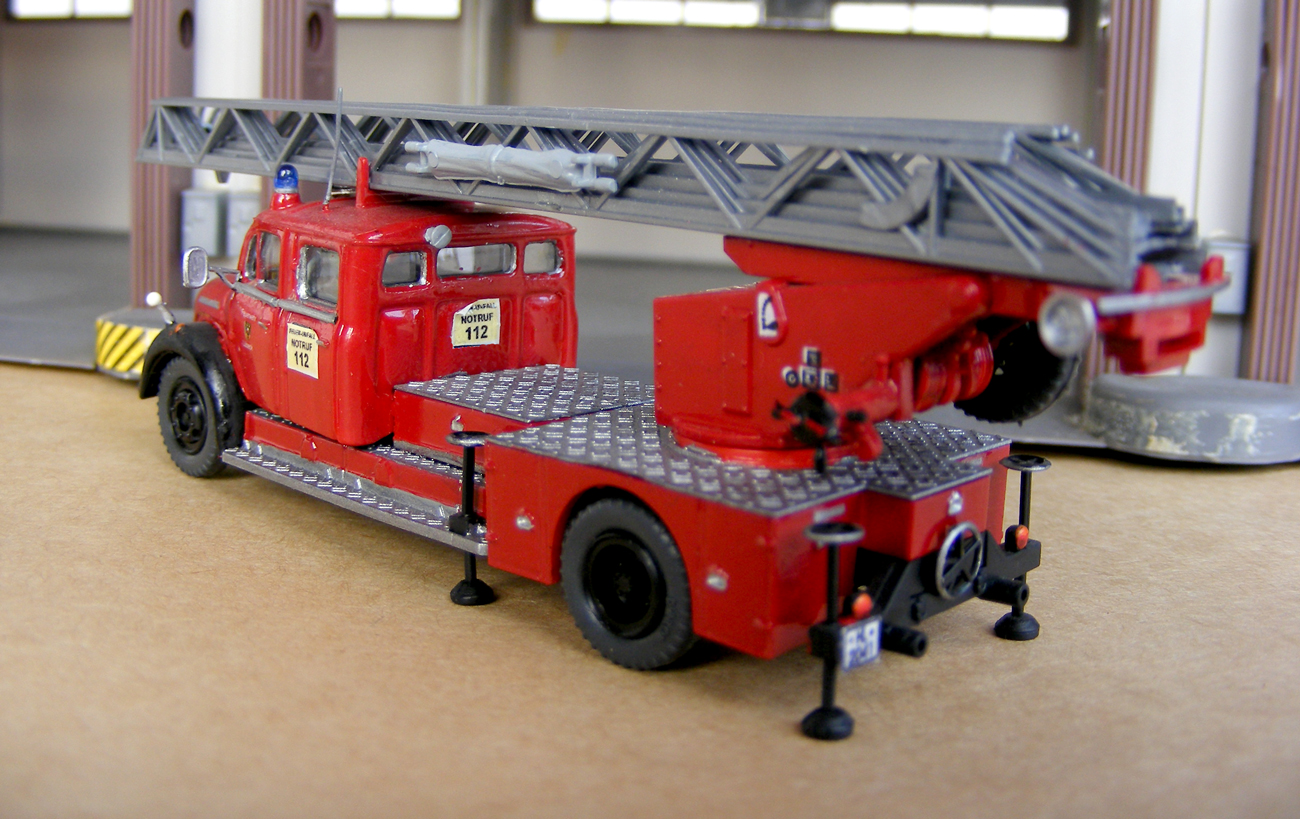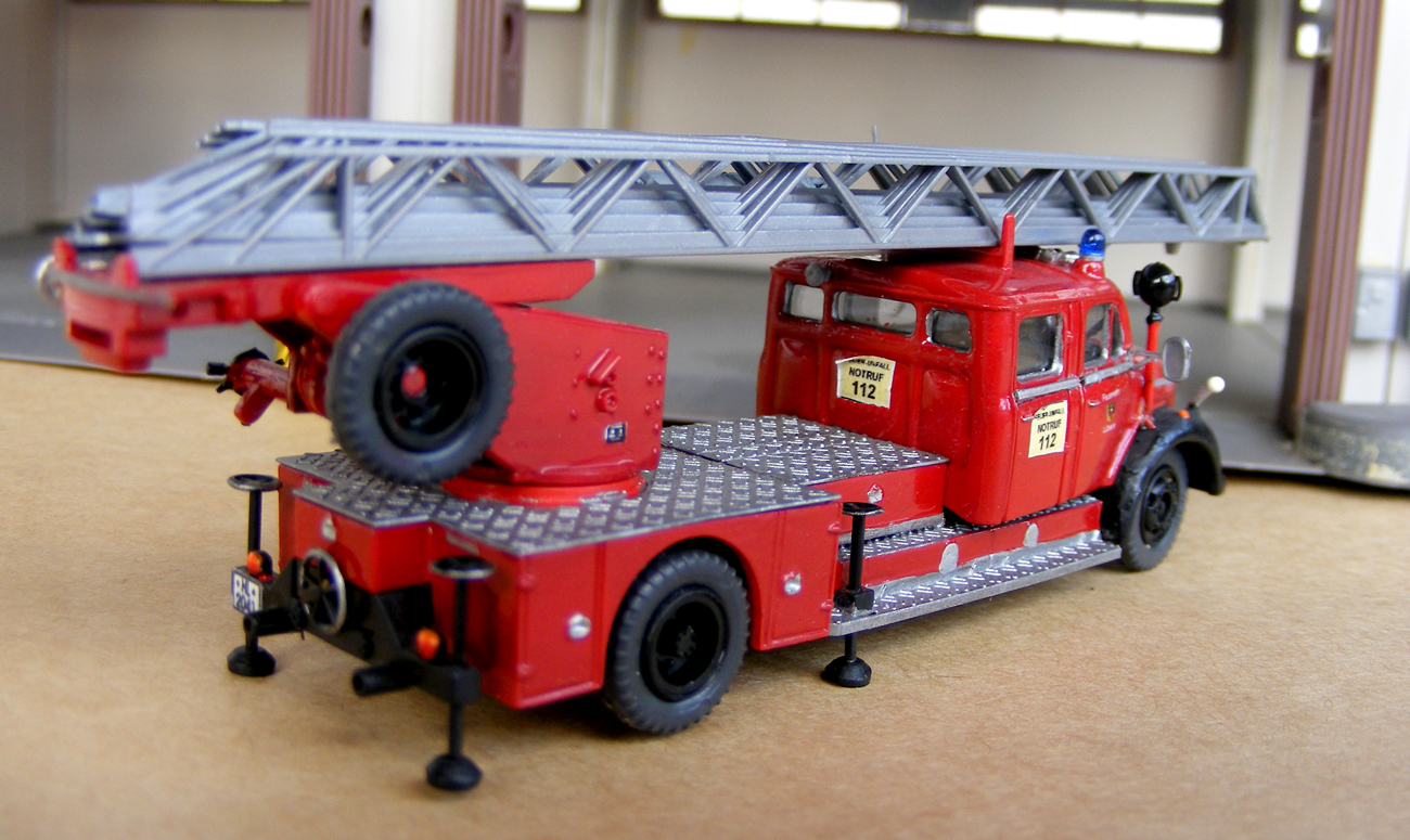 Sehr schön ins Modell umgesetzte DLs. Die Magirus-D Staffel-DLK gefällt mir ganz besonders, die ist ein schöner Beweis daß man auch aus dem uralten Wiking-Modell noch was richtig gelungenes rausholen kann.