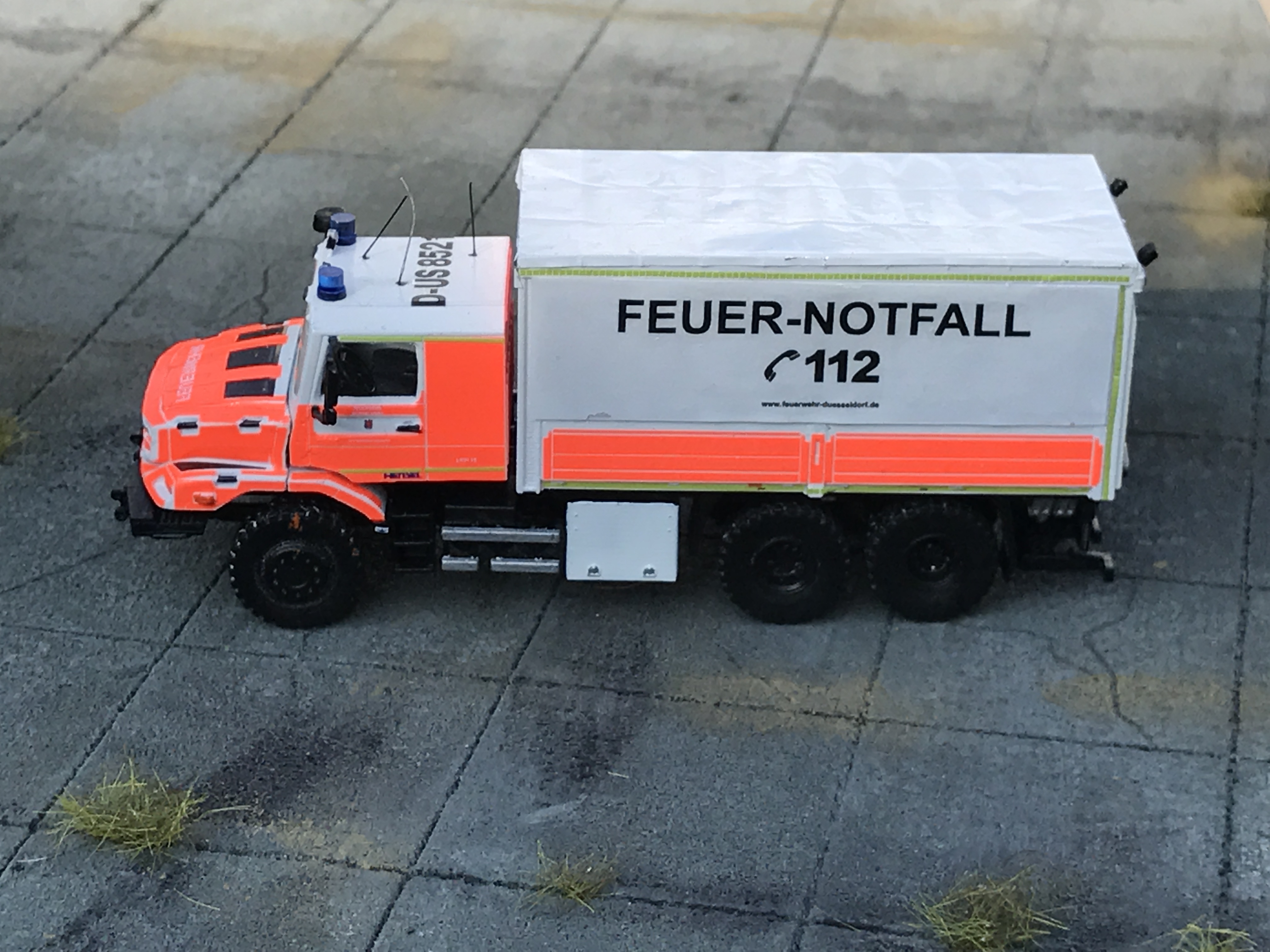Der LKW-19 ist beim Technik- und Kommunikationszug der Freiwilligen Feuerwehr Düsseldorf im Einsatz und der kleinere der beiden Zetros-Brüder. :wink: