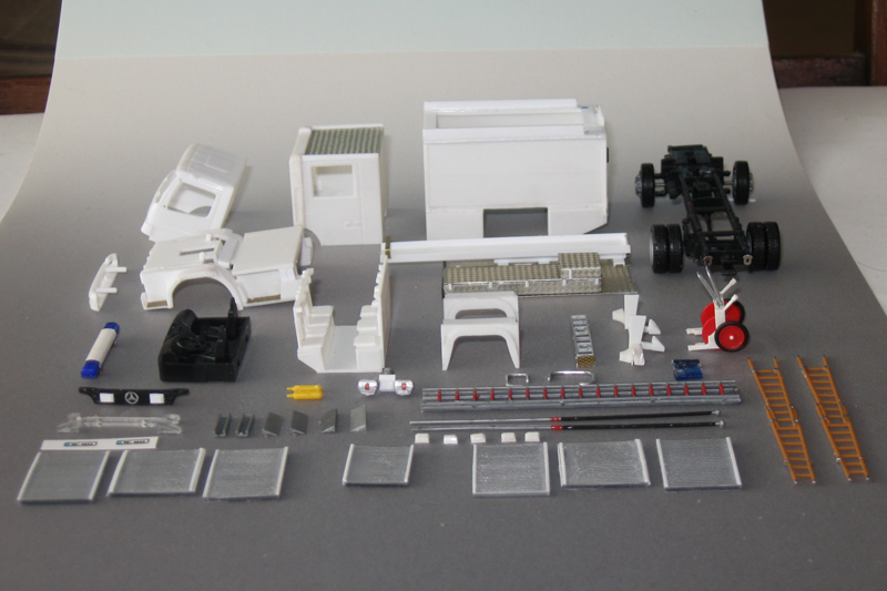Atego Fahrerhaus und Fahrgestell vom HLF 20 [...] Kunststoffplatten und Profile in verschiedenen Stärken und eine geätzte Riffelblechfolie.