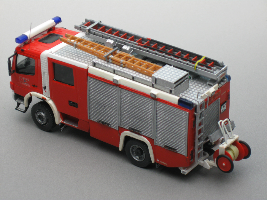 Schon ein paar Details zu einkaufen: Atego Fahrerhaus und Fahrgestell vom HLF 20 (allerdings muß ich da noch etwas ändern) vom HERPA Extrashop, Einmannhaspel von Rietze, Leitern von Roco, Kunststoffplatten und Profile in verschiedenen Stärken und eine geätzte Riffelblechfolie.