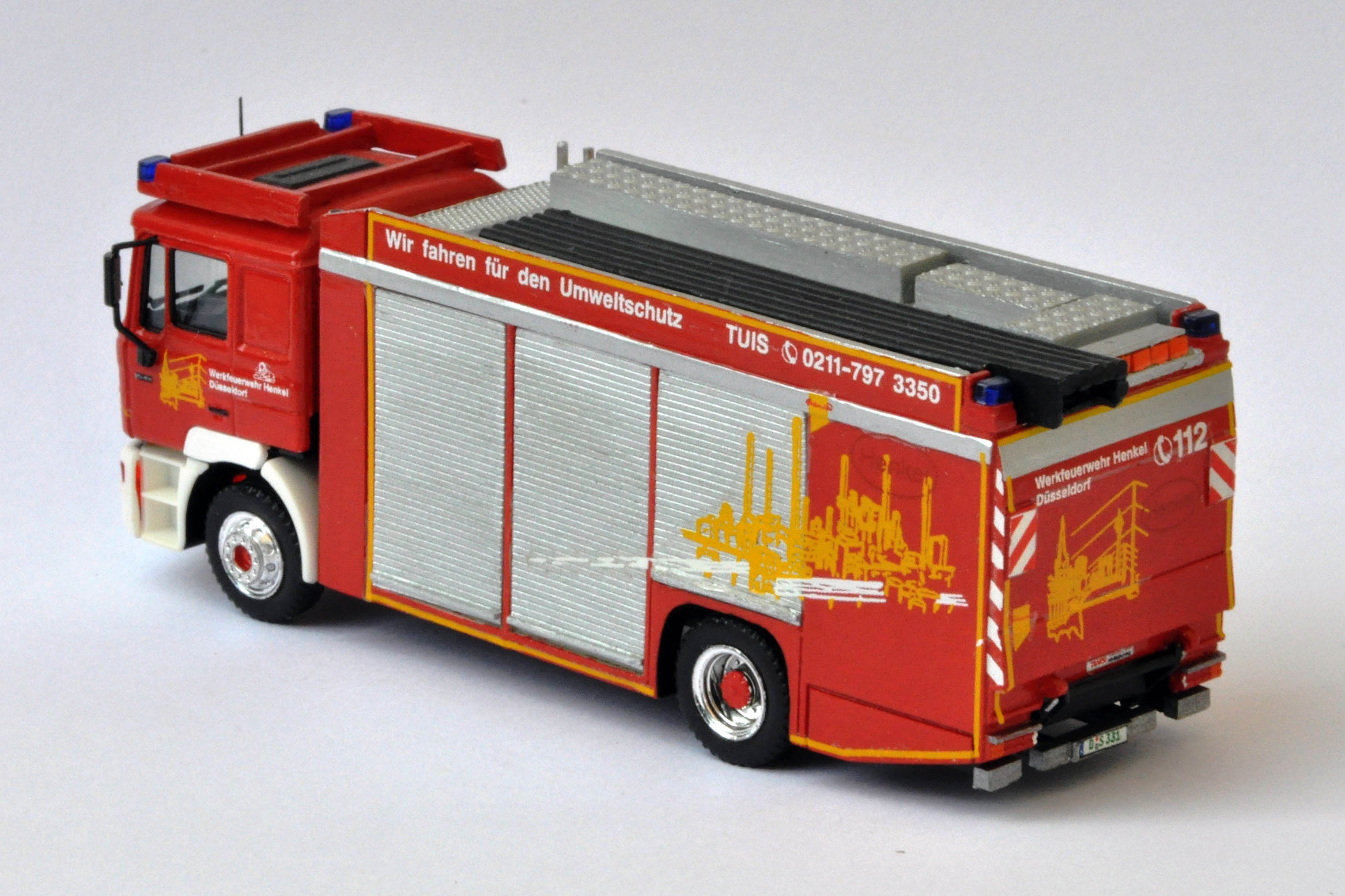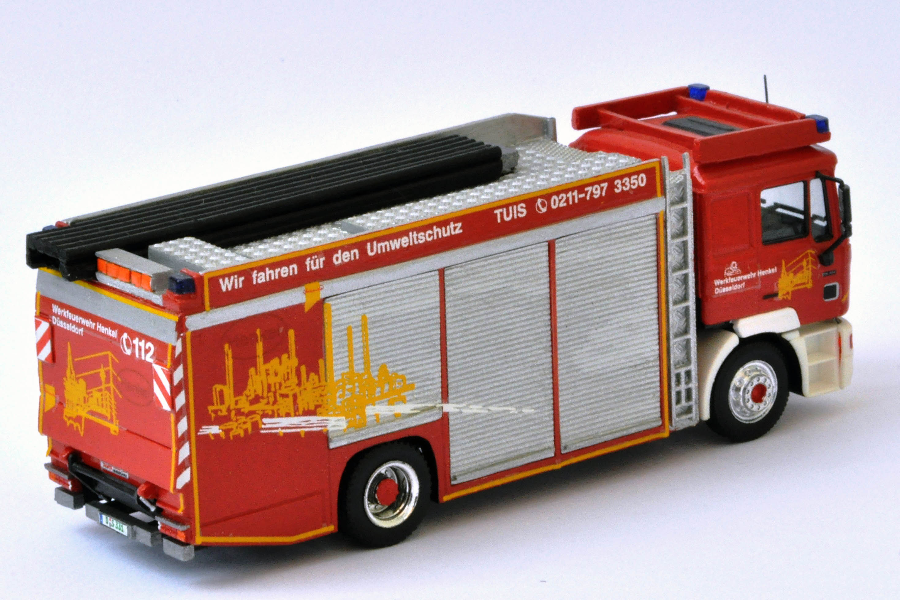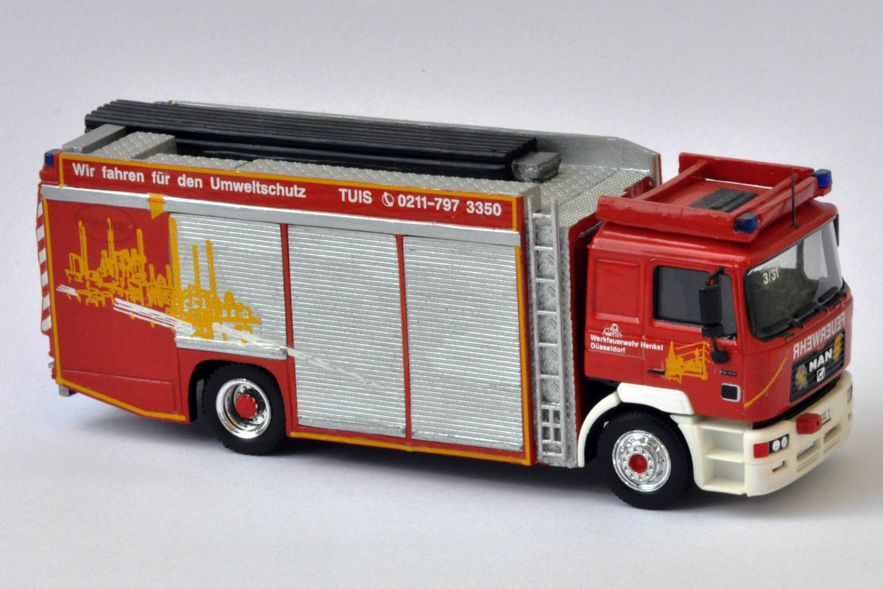 Dieses Modell entstand aus einem Merlau-Bausatz des TUIS-Rüstwagens der Werkfeuerwehr Henkel Düsseldorf. Ein sehr schöner Bausatz, vor allem die Decals sind super und einfach zu verarbeiten. Das Modell wurde von mir in Feuerrot lackiert und entsprechend dem Vorbild mit Details ergänzt.