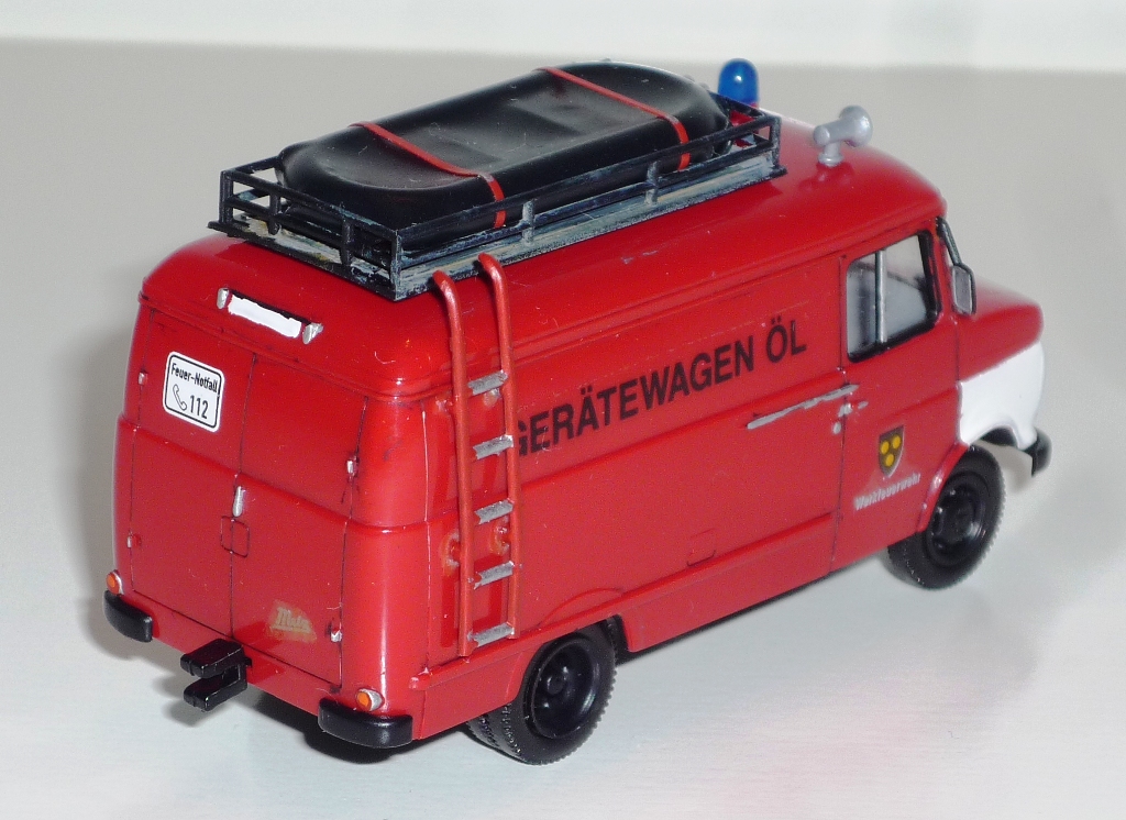 Dieser Zustand sollte 1968 ein Ende haben: Es wurde auf einem Standard-Kastenwagen der Marke Opel Blitz ein weiterer Gerätewagen-Öl aufgebaut. Das Fahrzeug war eine Eigenkonstruktion und enthielt zusätzliche Beladung zum eigentlichen Öl-Alarm-Fahrzeug (wird später mal vorgestellt). Für die Bekämpfung von Ölschäden im Hafenbecken bekam er zusätzlich ein Schlauchboot.