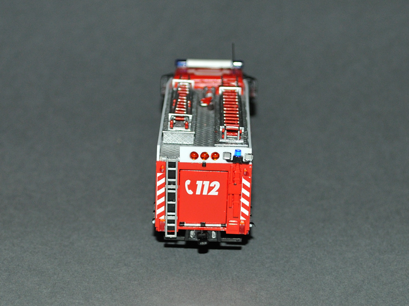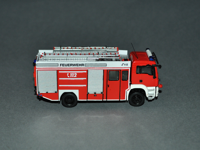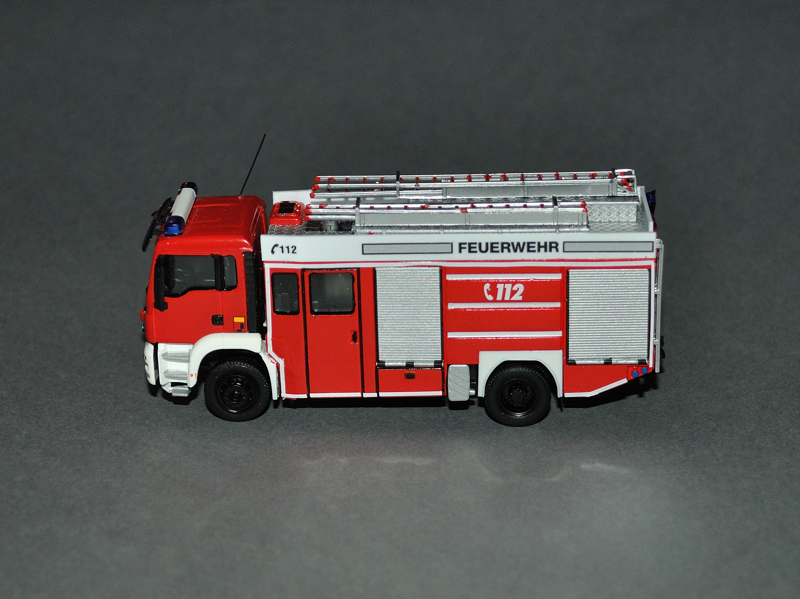 Das Modell besteht aus einem Herpa HLF2000 bis hinter G1, das Heck stammt vom TLF 24/60.