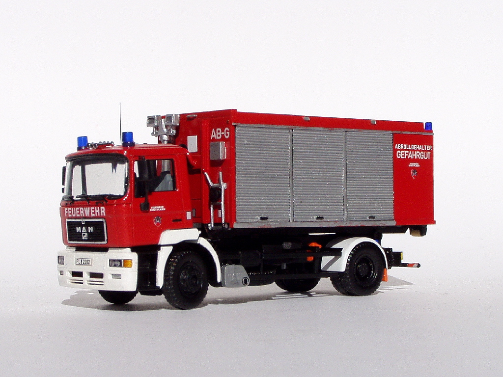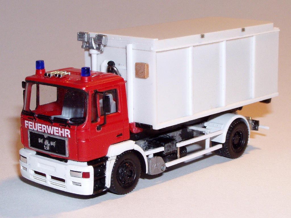Modell: Fahrgestell und Kabine = Herpa , Abrollmechanik = Kibri , AB und Kleinteile am Fahrgestell = Plastikplatten bzw. -profile.