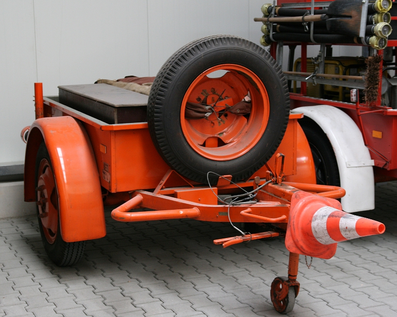Dabei ist mir aufgefallen: Auf der Deichsel sit die Plakette angebracht, die die Eisenwerke Grümer aus Oberwiehl als Aufbauer (zumindest des Anhängergestells) ausweist. Soweit steht das auch im Buch von P. Kupferschmidt.