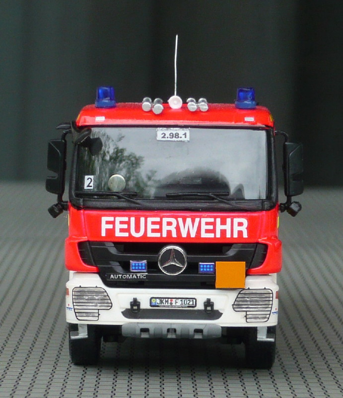 Der Actros-Auspufftopf von Herpa wurde durch ein Stück Auspuff von Kibri vervollständigt. Die Safelights stammen von M.B.S.K. und die Schäkel steuerte Rietze bei.