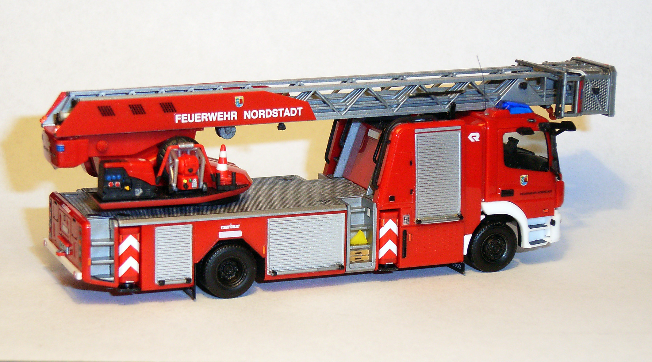 So, ihr Lieben! Meine Exportversion der L32 auf Euro 6-Atego ist (endlich) fertig! :D Hier nochmal die wesentlichsten Unterschiede zu "normalen" Drehleitern in Nordstadt: Längerer Radstand, 4-t-Kraneinrichtung, Sprungretter im G1/G2 (daher keine Haspel am Heck) und Designer-RKL.